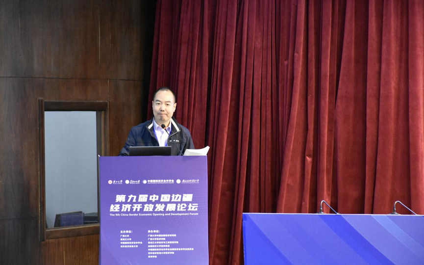 Li Guanghui, Dean of the Guangxi University China Border Economic Research Institute, delivers a keynote report