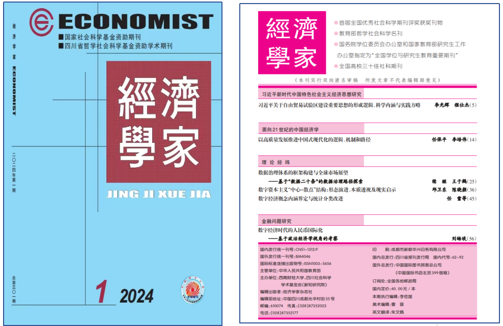 《经济学家》杂志是由西南财经大学承办的大型经济理论刊物,主要发表马克思主义经济学基本理论的研究;社会主义市场经济运行及其机制的研究;世界经济发展问题研究等文章。期刊收录于北大核心、 CSSCI、AMI核心,2023年复合影响因子:9.652。