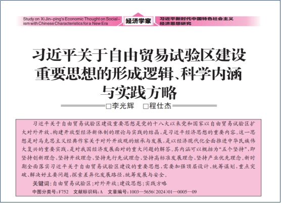 近日,公司李光辉教授、程仕杰博士研究生撰写的论文《习近平关于自由贸易试验区建设重要思想的形成逻辑、科学内涵与实践方略》在《经济学家》2024年第1期(总第301期)正式发表。
