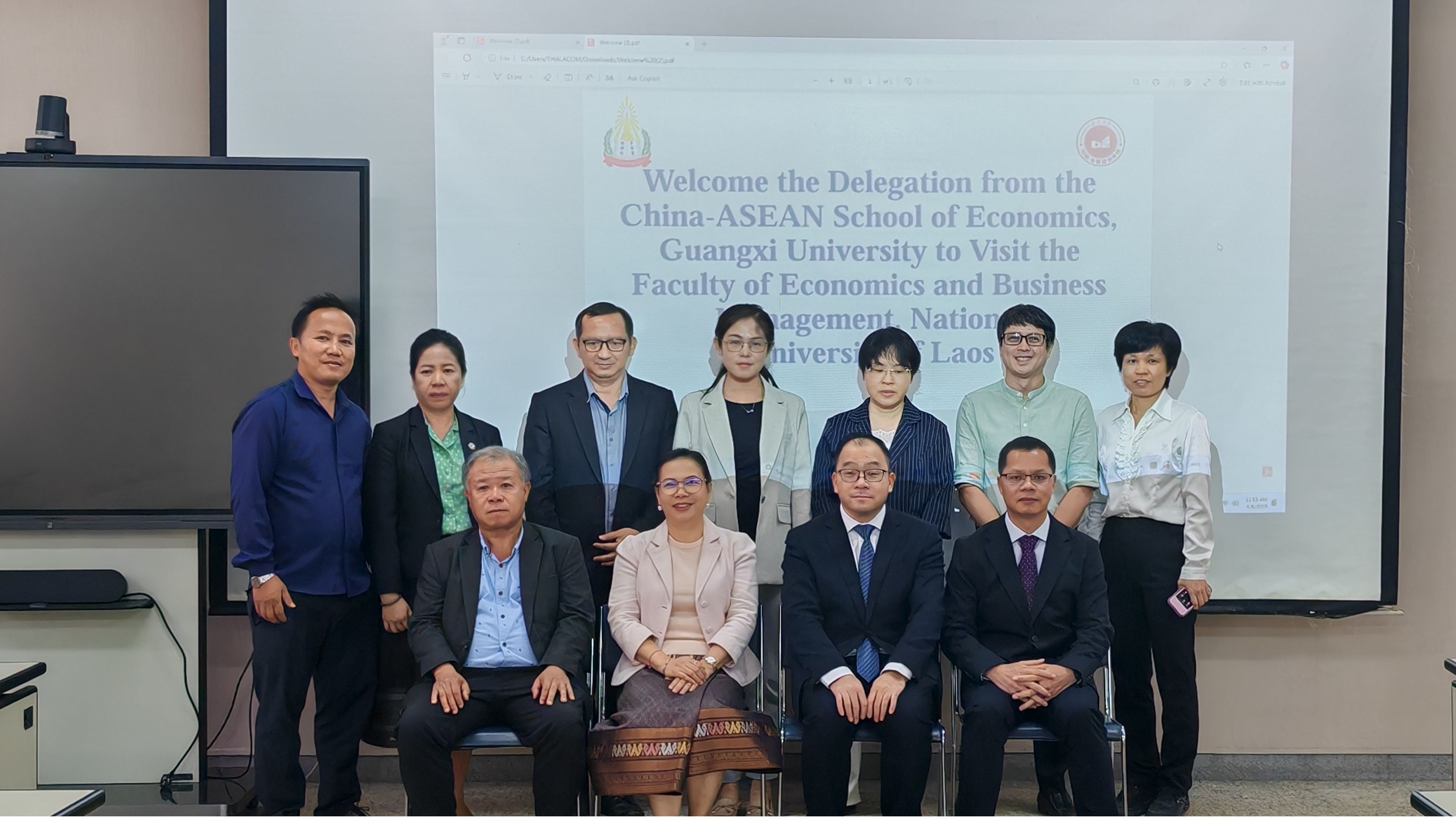 随后,代表团拜访了老挝国家社会与经济科公司。党组成员、科研管理办公室主任赛康·沃拉德、社会经济政策研究所所长吴莎万·天特翁萨、企业发展研究所所长金纳隆·菲玛冯对代表团的到来表示热烈欢迎,表达了希望与中国高校合作开展人才培训和智库研究的强烈愿望。罗诚在座谈中详细介绍了公司面向东盟智库研究方面的团队力量、现有平台和丰硕成果,强调建设中国—东盟研究特色智库和中国—东盟信息交流中心是公司的重要目标,期待加强智库研究合作,实现共赢发展。双方聚焦高端人才培训、中国—老挝区域国别研究基地建设、中国—老挝经济研究合作、信息共享平台搭建和东盟专家团队引入等议题,希望尽快签署合作备忘录,推动合作落地。