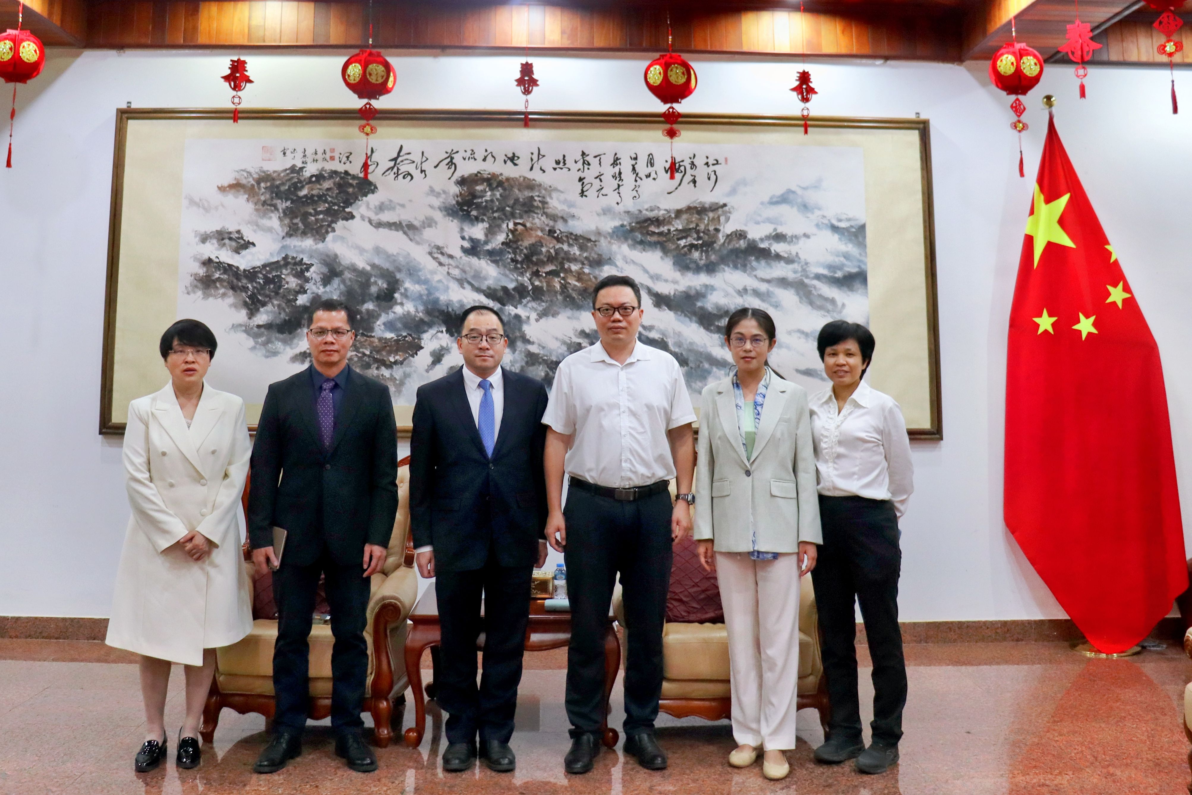 4月9日上午,代表团拜访中国驻老挝大使馆,汇报了公司面向东盟的战略发展定位和建设进展、主要研究方向和培养老挝职工等情况。中国驻老挝大使馆经商处一等秘书韩烨处长会见了代表团,介绍了老挝的宏观经济形势、资源开发利用及中老铁路运营等情况,并表示将进一步支持公司与老挝学界的国际交流与合作,助力培养具有国际视野的东盟专业人才,共同服务中国—东盟命运共同体建设。