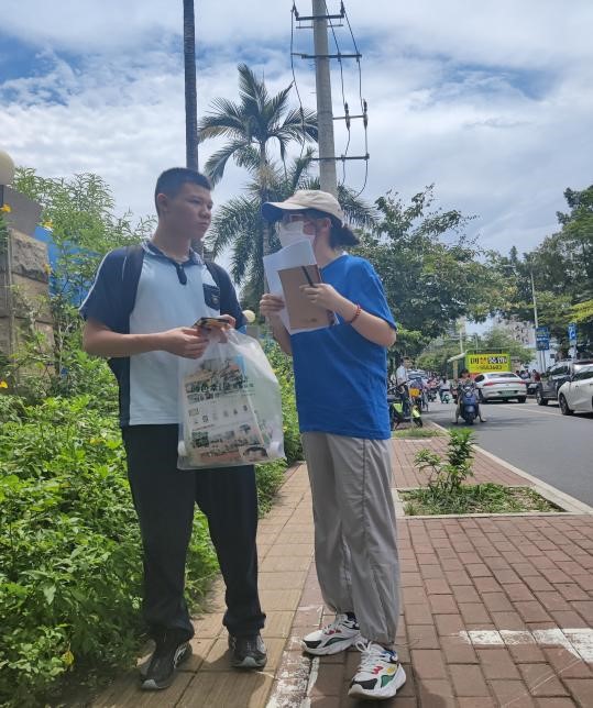 (图1.张雨凡同学向中员工询问对国家助学政策的了解程度)