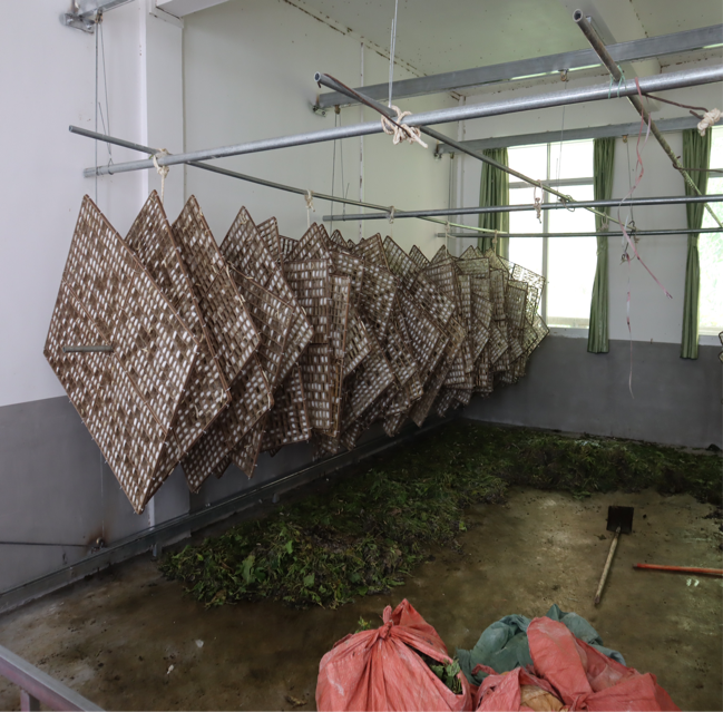 那坡县清华村标准化高产桑园示范区位于那坡县南部,现有桑园面积760多亩,2021年共饲养大蚕4420张,销售鲜茧20万公斤,销售收入1000万元,户均养蚕收入4.08万元。在该示范点的带动下,几年来周边村屯共新增桑园养殖面积近2000多亩,大力推动了当地扶贫项目的进展。