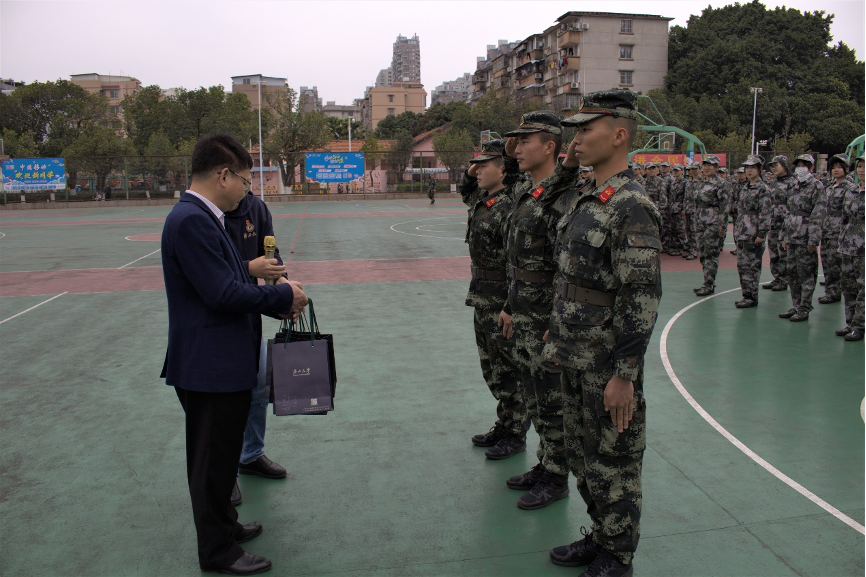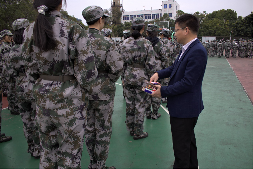 最后公司领导老师们向军训教官和每位学员发放慰问品,并致以亲切的问候与关怀,勉励大家勇于磨练自我、超越自我,圆满完成军训任务!