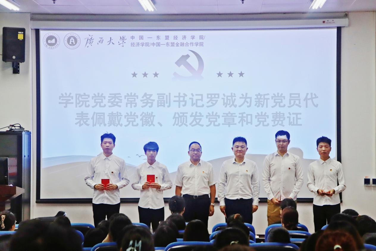 宣誓仪式在雄壮的国歌中拉开帷幕。陈卉娟宣读公司党委2023-2024学年新发展党员名单。罗诚为新党员代表佩戴党员徽章,并颁发《中国共产党章程》和《党费证》。