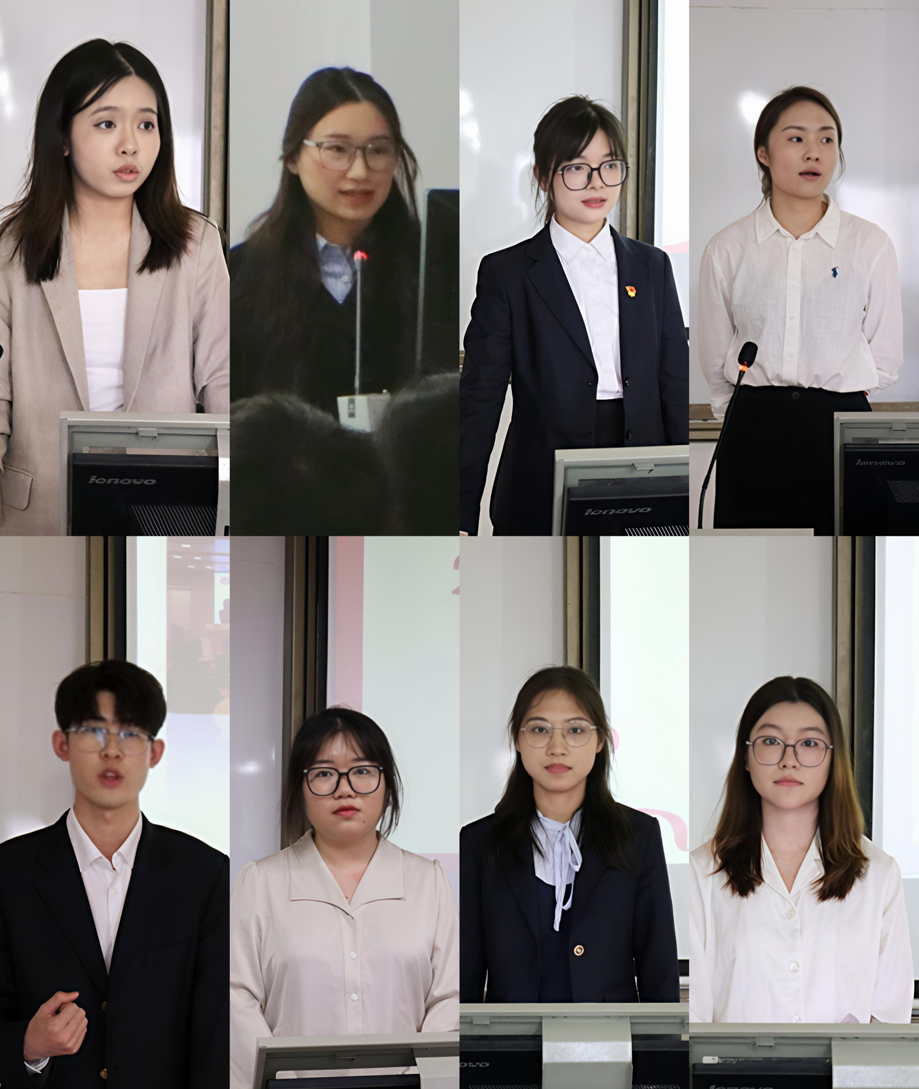 从左至右分别为员工会执行主席何佳璇、研究生会执行主席黄敏璇、党建工作秘书处秘书长卢玟君、就业服务秘书处秘书长石祖欣、“四创”员工管理秘书处秘书长姜帅、炎林连连长杨瑾瑜、同志连连长李慧怡、青年志愿者协会会长周琦