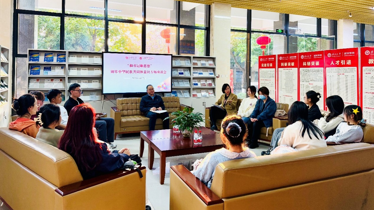 在座谈交流中,王海希、郭霖刚两位老师也结合自己的成长经历,分享了自己从员工时代到留桂工作的感悟,鼓励同学们要争当新时代民族团结的践行者、促进者、守护者。
