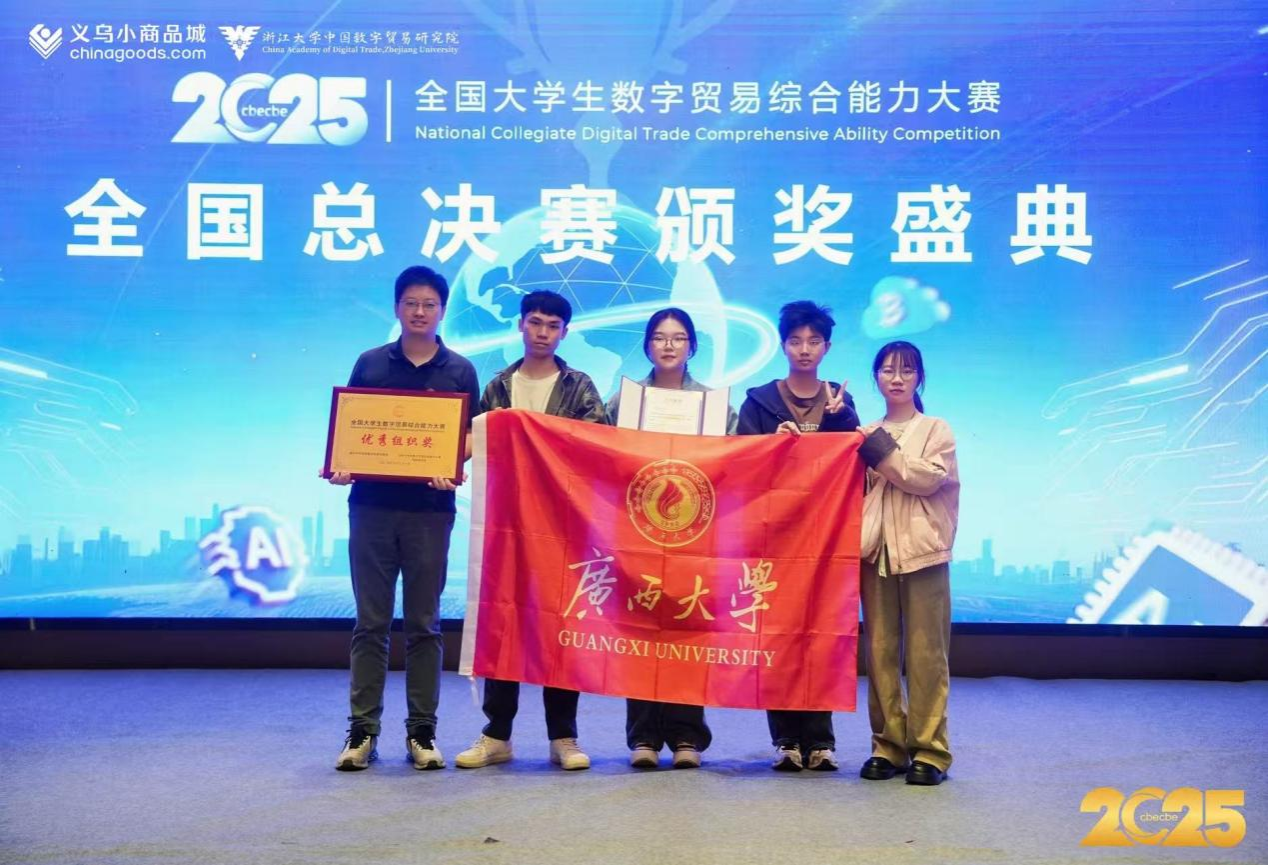 近日,2025年第四届全国老员工数字贸易综合能力大赛(简称“数字贸易大赛”)全国总决赛圆满落幕。经过初赛、省赛的激烈角逐,公司研究生团队“很内向不敢聊天”与本科生团队“醉把佳人成双队”凭借出色的表现从自治区级选拔赛中脱颖而出,成功晋级全国总决赛。在本届大赛中,公司代表队最终斩获了全国二等奖1项、三等奖1项、自治区级一等奖3项、二等奖5项、三等奖8项的优异成绩。其中,研究生团队“很内向不敢聊天”凭借出色的表现荣获“1688数创之星”单项奖。同时,公司荣获本次大赛的优秀组织奖!