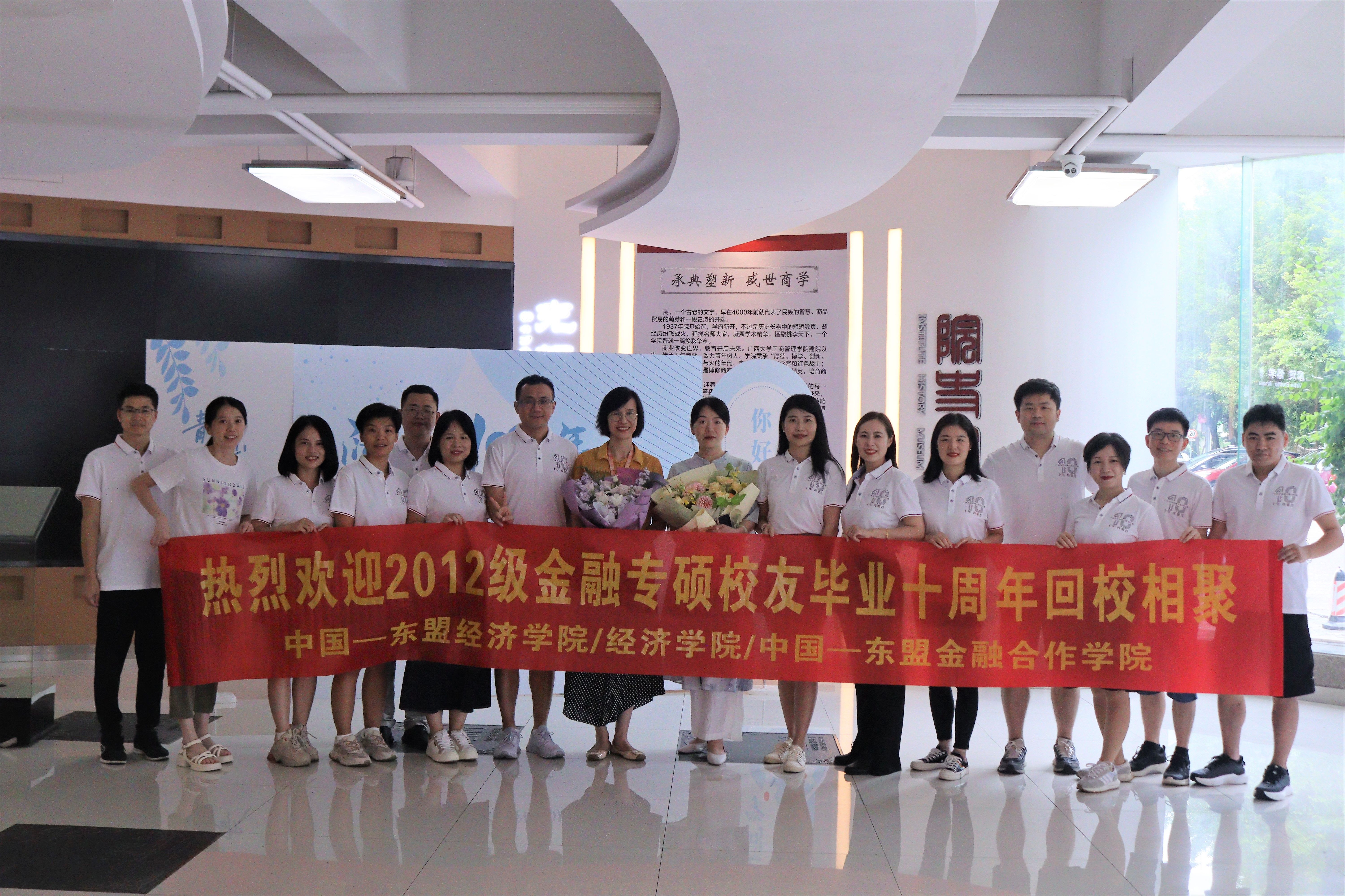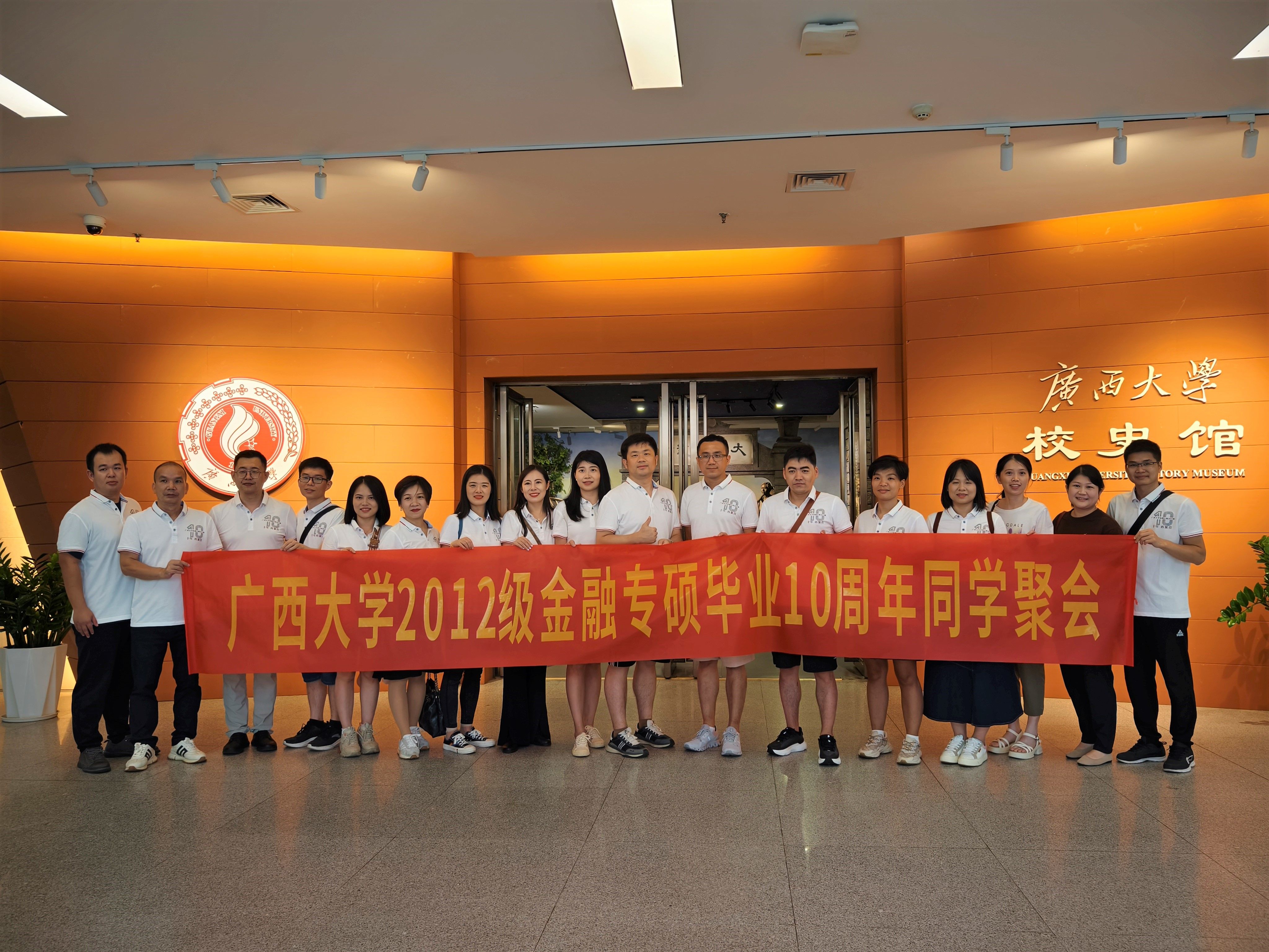 7月13日,2012级金融专硕员工齐聚南宁,重返母校,在MBA大楼315会议室庆祝毕业十周年,共叙师生情谊,重温青葱岁月。