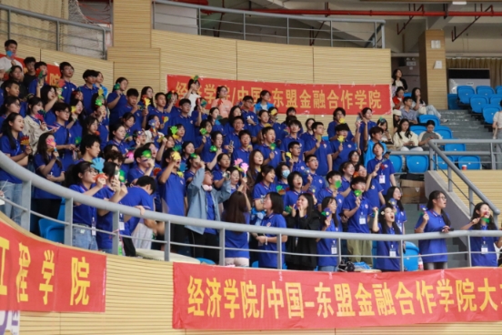 随着舞蹈步入高潮,公司观众席上为啦啦操队员们加油的呐喊声响彻全场,大家一起喊着“经世济民,力争奋进;学通中外,时不我待”的口号为啦啦操队员们奉上最热烈的鼓劲和祝福。观众们纷纷拿起相机记录下这精彩的一幕,展现着公司的团结与奋进。