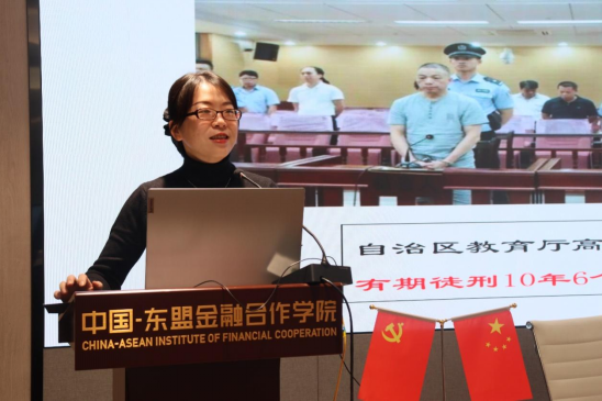 为筑牢高校教职工廉洁自律的思想防线,推动以案明纪、以案促改,11月19日,伟德国际1946/中国-东盟金融合作公司党委副书记、纪委书记陈卉娟面向全体教职工开展“拒腐防变不松懈、酒驾醉驾要杜绝、这些饭局去不得”三方面内容的案例警示教育。
