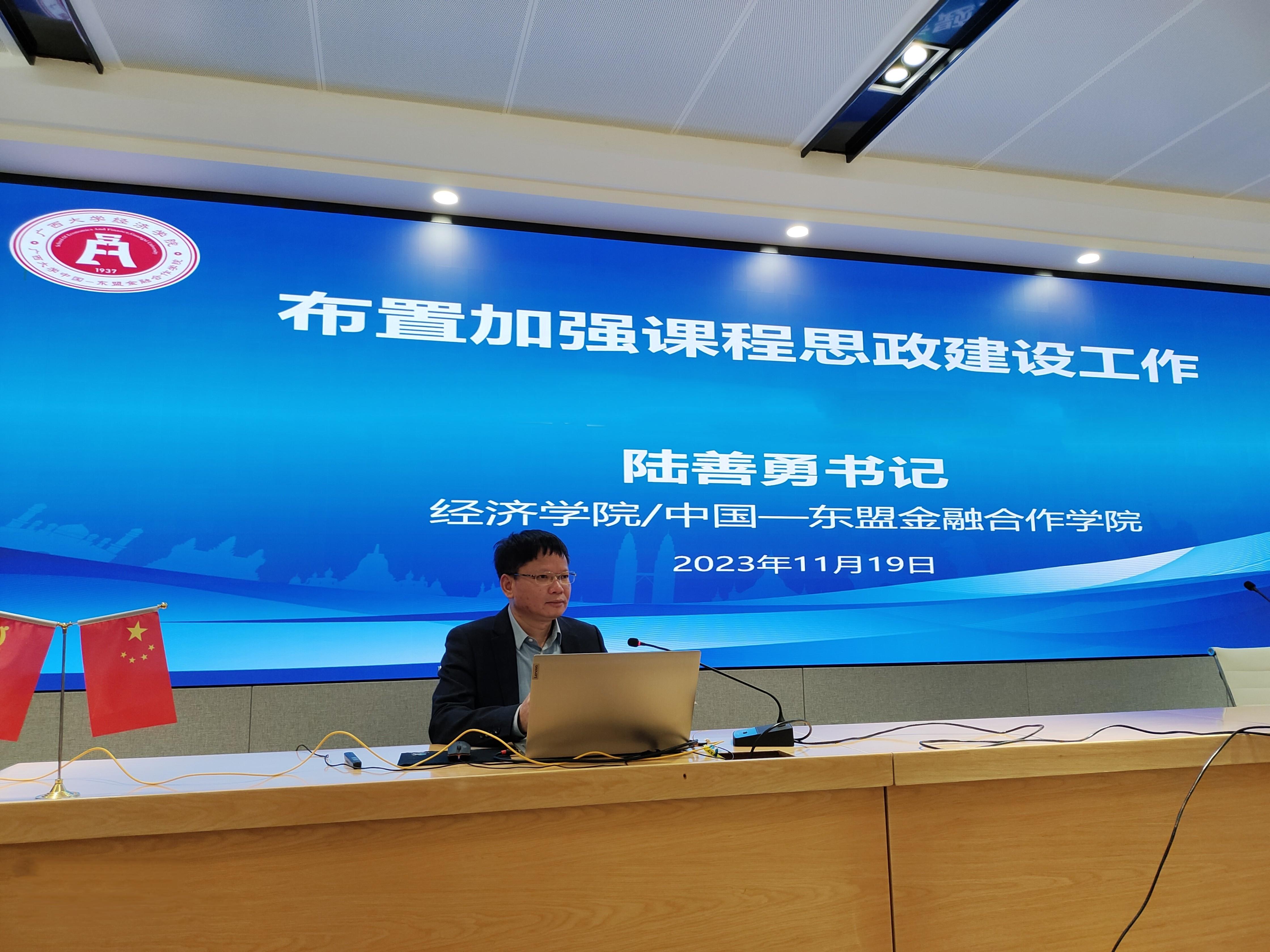 为深入学习贯彻习近平总书记关于课程思政建设的重要指示精神,充分发挥公司党委思政引领、以上率下作用,促使各类专业课程与思政教育同向同行,思政与学科、教学、教材、管理相结合,11月19日,伟德国际1946/中国-东盟金融合作公司召开课程思政建设工作推进会,公司党委书记陆善勇结合公司实际布置加强课程思政建设工作,全院教职工参加会议。
