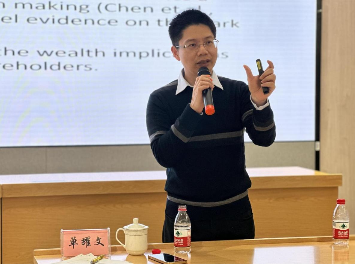 在最后的交流互动环节,单耀文教授与现场的老师和同学们就论文中的变量选取、内生性检验、实证策略,以及论文选题与发表等内容展开了充分的探讨交流。