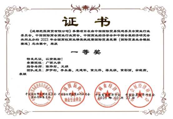 全国高校商业精英挑战赛国际贸易竞赛已连续两年被中国高等教育学会高校竞赛评估与管理体系研究工作组纳入《全国普通高校老员工竞赛排行榜》,是教育部官方认可的,最具含金量、最具参赛价值的A级赛事。该竞赛是由中国贸促会商业行业委员会、中国国际商会商业行业商会、中国商业经济学会和中国会展经济研究会联合主办,中国贸易报社支持,中国贸促会商业行业委员会承办的国家级学科竞赛活动,同时也是目前我国规模最大、级别最高的国际经济与贸易专业赛事,具有“以赛促教、以赛促学、以赛促改、以赛促强”的鲜明特色,是全国各高校培养高素质国际商贸人才的重要交流平台、高等商科教育领域跨专业综合实训和创新实践平台。