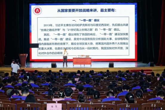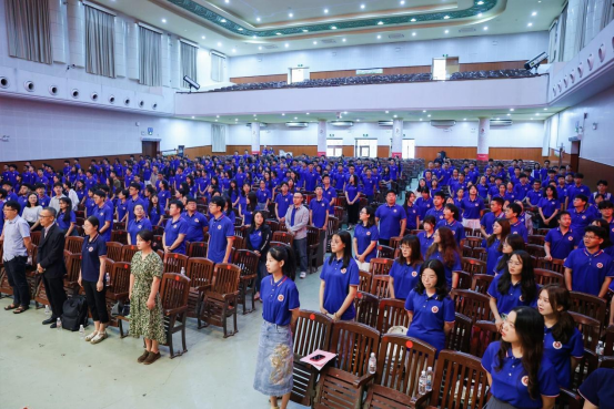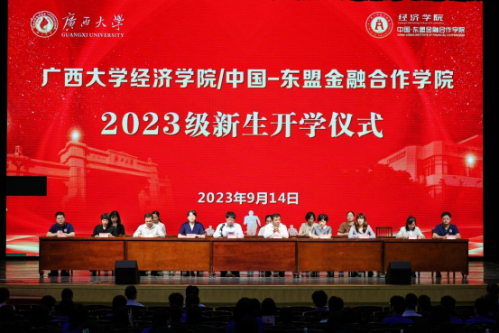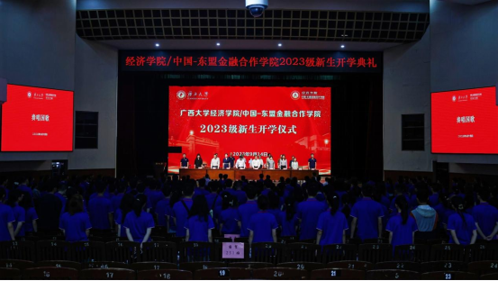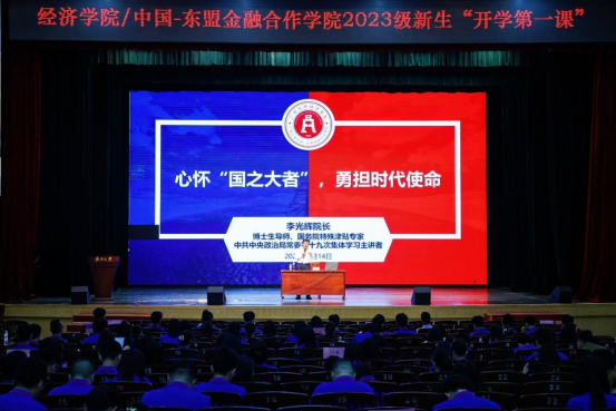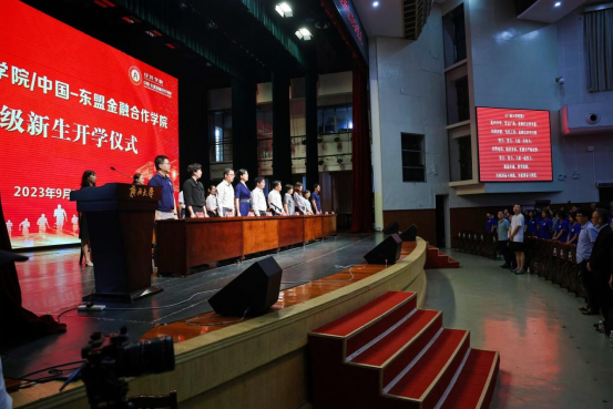 伟德国际1946/中国-东盟金融合作公司2023级新生开学仪式现场