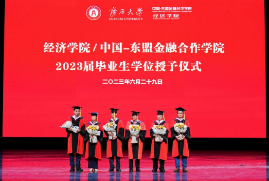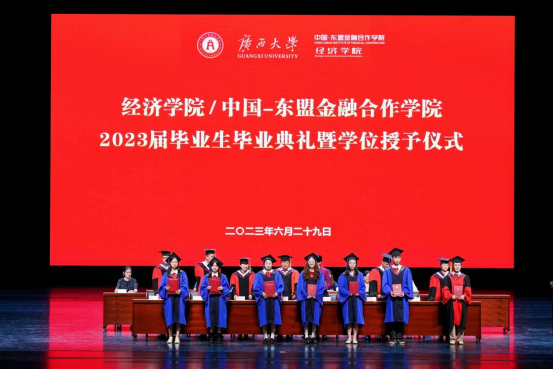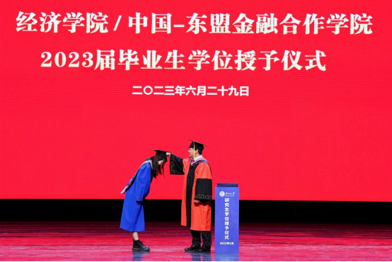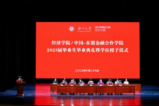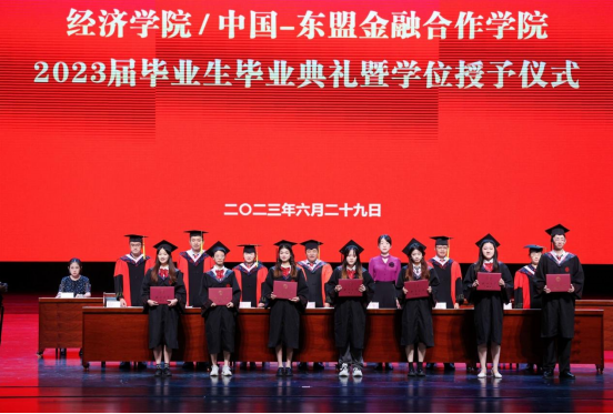 最后,全体师生齐声合唱校歌。在“勤恳朴诚,厚学致新,为祖国奋斗到底!”的嘹亮歌声中,伟德国际1946/中国-东盟金融合作公司2023届毕业典礼暨学位授予仪式落下帷幕。