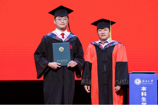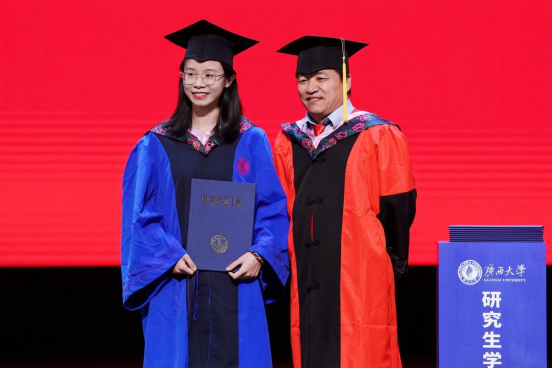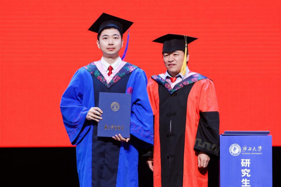 公司领导和学位评定分委员会委员为本研毕业生代表颁发毕业证书