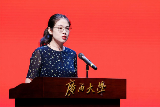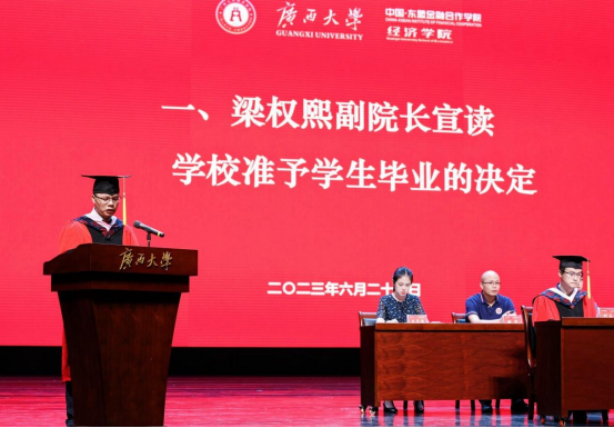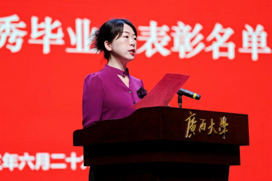 陈卉娟副书记宣读公司获得2023届广西壮族自治区普通高等教育优秀毕业生的毕业生名单和伟德国际1946表彰优秀毕业生的决定。