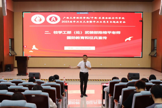 6月9日上午,伟德国际1946/中国-东盟金融合作公司2023届毕业生大会暨毕业生党员专题教育会在资源环境与材料公司123报告厅召开。公司党委书记陆善勇,党委副书记/纪委书记陈卉娟,学工部(处)、武装部陈榕平,公司团委书记王海希,团委副书记蒙江勇,辅导员蒙昀、覃晓阳、曾宪友、何湘桂出席本次会议,2023届全体毕业生与会。
