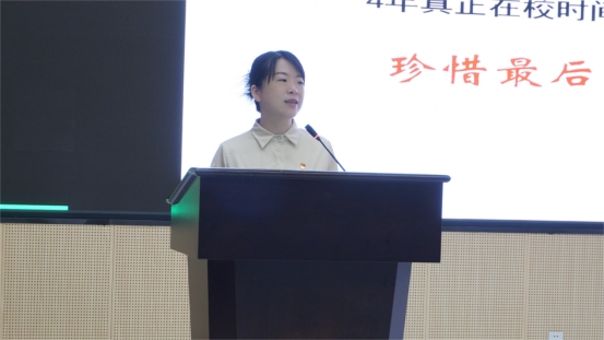 会议伊始,公司党委书记陆善勇教授给毕业生讲话。陆书记首先代表公司党政预祝公司2023届四百余名同学在6月顺利毕业!他向全体毕业生阐释了公司名称中“经济”二字蕴含的经世济民、治世安民的深刻内涵,在全党深入开展学习贯彻习近平新时代中国特色社会主义思想主题教育之际,希望同学们用习近平新时代中国特色社会主义思想武装头脑、指导实践,勇担新时代青年的责任使命。陆书记对毕业生提出三点要求:一是严格遵规守纪,做好表率。要站好毕业前的最后一班岗,给自己的老员工涯划上完满的句号,成为学弟学妹们的榜样;二是坚持立德修身,勤学进取。要保持孜孜不倦、敢想敢为的积极态度,在社会这本大书里学思践悟、淬炼本领;三是心怀家国,努力奔赴理想。要将个人建功立业的志向与实现中华民族伟大复兴的中国梦相结合,秉承经世之志,勤修济民之学,发挥实干精神,为理想去拼搏。