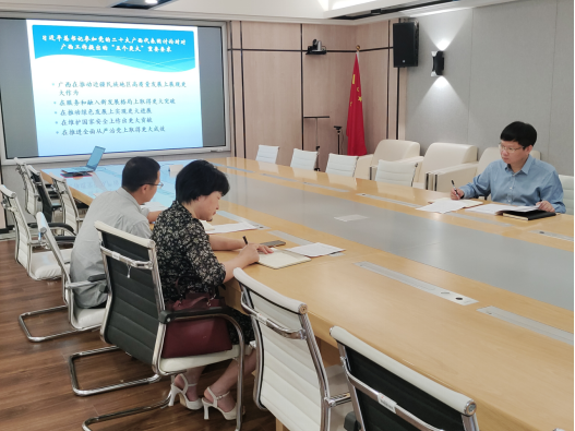 会议强调,党的十八大以来,习近平总书记两次赴广西考察,多次作出重要指示,为建设新时代中国特色社会主义壮美广西指明了方向。我们要精准、全面、系统地理解系列讲话精神的内在逻辑,深刻领会、牢牢把握“凝心聚力建设新时代中国特色社会主义壮美广西”总目标、“四个新”总要求和广西区情“四个突出特点”“三大定位”使命和“五个扎实”等一系列重要要求,结合公司和公司“双一流”建设,以学科、人才、教学、科研、社会服务五个高质量发展为抓手,师生同心齐发力,争取在新一轮学科评估中取得较好的成绩。