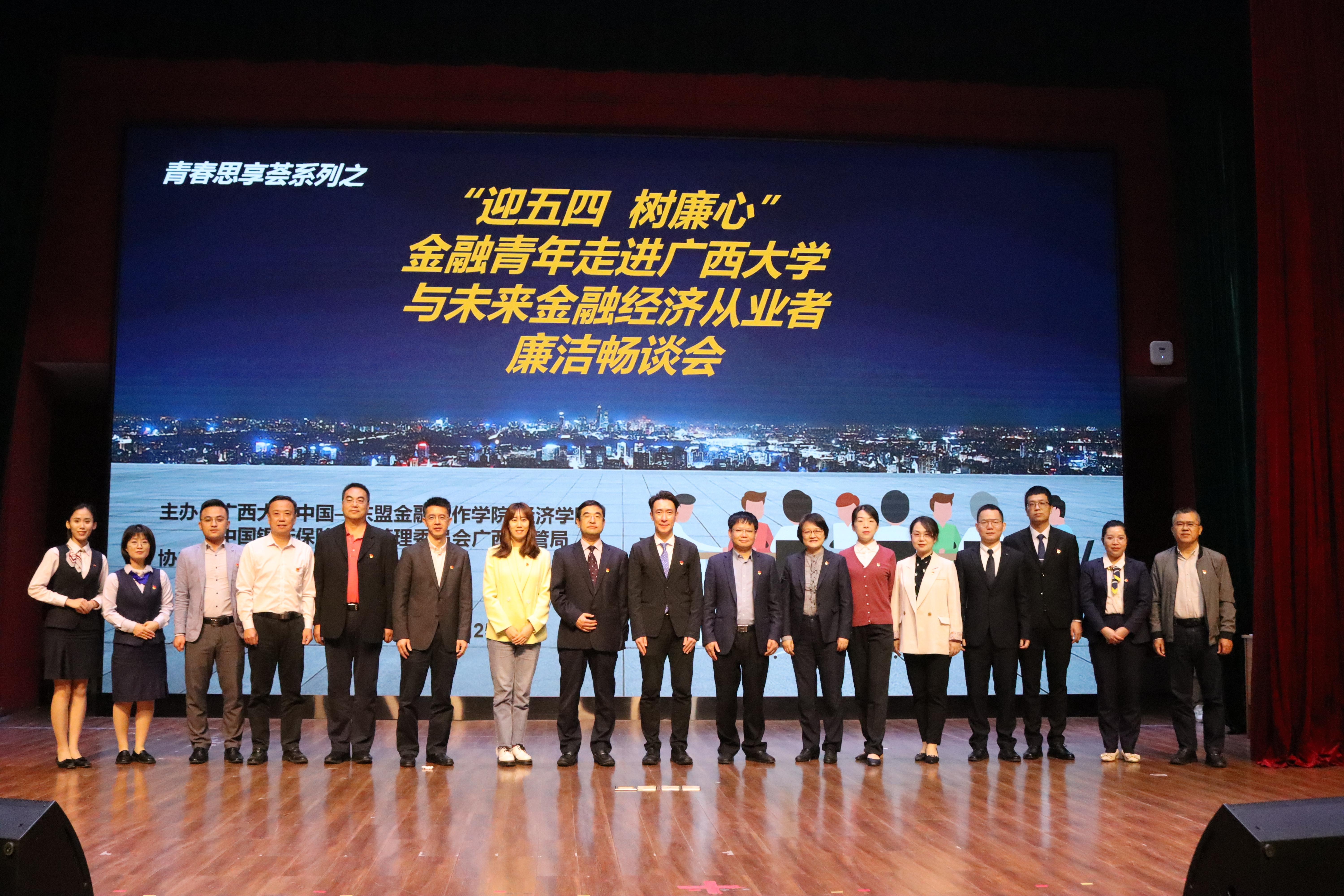 “为什么金融领域容易滋生腐败?”“腐败离年轻人远吗?”“金融从业者如何才能扣好廉洁从业的第一粒扣子?”“金融专业老员工需要做好哪些准备才能尽快适应银行、保险工作?”......4月25日晚,伟德国际1946老员工活动中心小礼堂灯火通明,一场金融青年与未来金融经济从业者的思想碰撞与心灵对话在这里拉开帷幕。值“五四”青年节即将到来之际,伟德国际1946中国-东盟金融合作公司/伟德国际1946联合广西银保监局主办,邀请广西银保监局、广西银行业协会、广西保险行业协会、广西金融团工委的部分机构纪委书记、优秀金融青年代表走进伟德国际1946,与公司300余名未来将进入金融经济领域工作的老员工共同开启了一场别开生面的“廉洁畅聊会”。