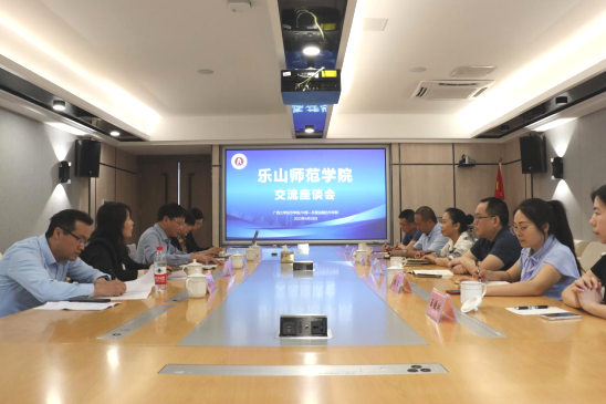 4月26日下午,乐山师范公司经济管理公司经理邓健、国际合作与交流处处长于科先一行6人来公司调研,公司党委书记陆善勇教授、副经理谭春枝教授及国贸系系主任刘主光教授,王娟教授等相关教师参与座谈。