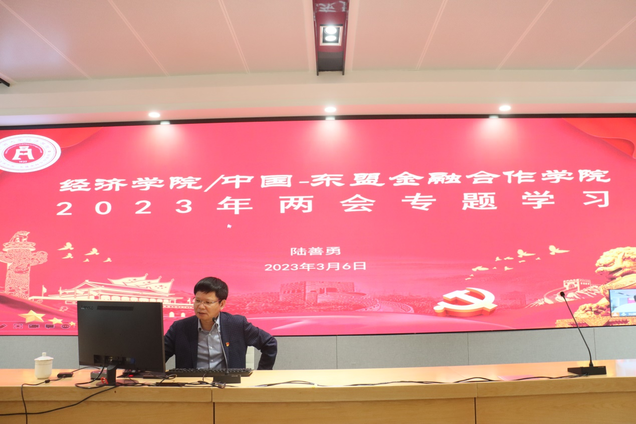 3月6日下午,伟德国际1946/中国-东盟金融合作公司党委理论学习中心组在公司101教室举办两会专题学习会,公司党委委员、公司党委书记陆善勇教授领学李克强总理作的2023年政府工作报告和习近平总书记参加江苏代表团审议时的讲话精神,公司党委委员、全体党支部书记参加学习并交流。