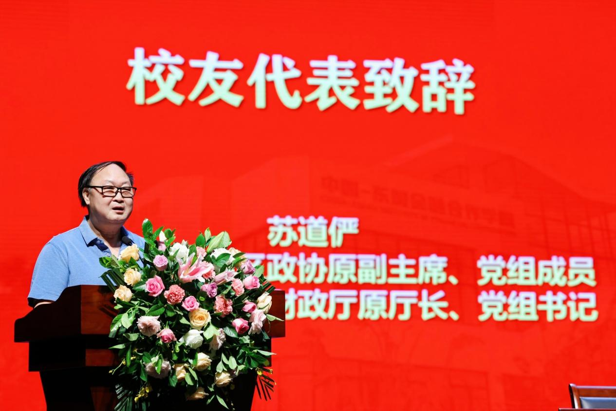 接下来,公司杰出员工,广西壮族自治区政协原副主席、党组成员,广西壮族自治区财政厅原厅长、党组书记,财政部驻广西壮族自治区财政监察专员办事处原监察专员、党组书记苏道俨致辞。苏道俨员工1986年进入伟德国际1946经济管理专业学习,1992年再到西大攻读经济学专业硕士研究生,他特别感念和珍惜这段校园时光。苏道俨员工对朝气蓬勃的新生提出了三点殷切希望:第一,要志存高远。求学路上,做到以青春之我,担时代之责,筑强国之梦,不辜负时代、国家和人民;第二、要立德修身。践行社会主义核心价值观,做到立德修身、以德立身、以德润身;第三,要守正创新。发扬创新精神、树立创新理念、提升创新能力。他衷心祝愿同学们心中有梦,眼里有光,拼搏进取、学有所成!祝愿老师们身体健康、工作顺利!祝愿公司发展得越来越好!祝福母校更加辉煌!
