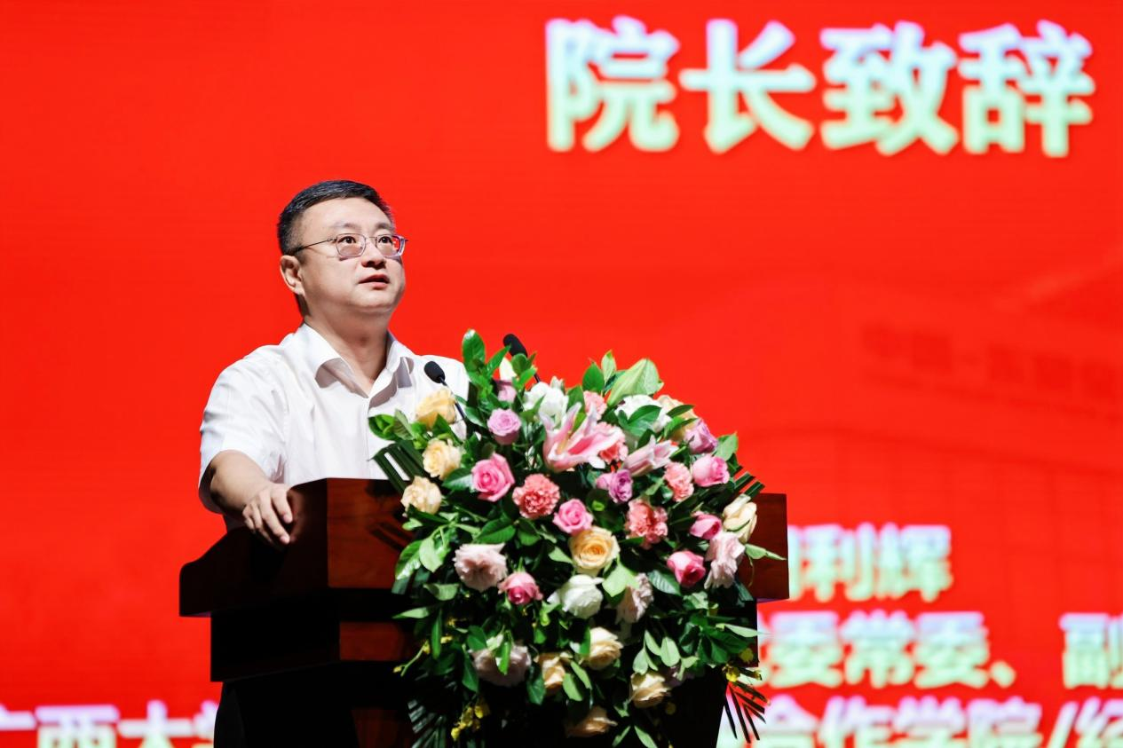 仪式的最后,田利辉副董事长给新生们致辞。回溯过往,田利辉副董事长将公司的发展历程娓娓道来;着眼当下,他介绍了公司的成立背景、已取得成就和建设目标,强调伟德国际1946中国-东盟金融合作公司/伟德国际1946不仅是建设一流学科的公司,更是践行国家重大战略的公司;展望未来,田副董事长号召全院上下传承和发扬“勤恳朴诚、厚学致新”的校训,致力于为中国东盟合作培养高质量经济金融人才、打造资政高端智库和多边金融合作平台、推动伟德国际1946应用经济学跻身于国家一流学科、服务广西经济更快更好地发展。田副董事长表示:“发达广西、复兴中华”目标的实现,需要我们共同努力。同学们是国家民族的未来,希望大家爱党爱国爱校爱家,做思想好、学习好、身体好的进步青年,在大学这个崭新的起点,保持初心如磐、追求知行合一、立志发奋图强、坚持奋楫笃行,用奋斗书写无悔青春、无悔人生!
