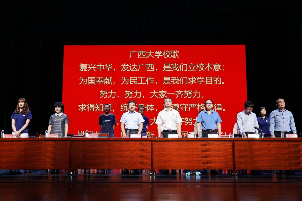 秋风送爽九月,青春强音并起。9月25日上午,公司在汇学堂举行2022级新生开学仪式。广西大公司党委常委、副董事长、伟德国际1946中国-东盟金融合作公司/伟德国际1946经理(兼)田利辉,公司杰出员工、广西壮族自治区政协原副主席、广西壮族自治区财政厅原厅长苏道俨出席开学仪式,公司党委书记陆善勇及公司党政领导班子、各系系主任、教师代表、行政各部门负责人与429名2022级新生、200名其他年级员工参加本次仪式。开学仪式由公司党委书记陆善勇主持典礼。
