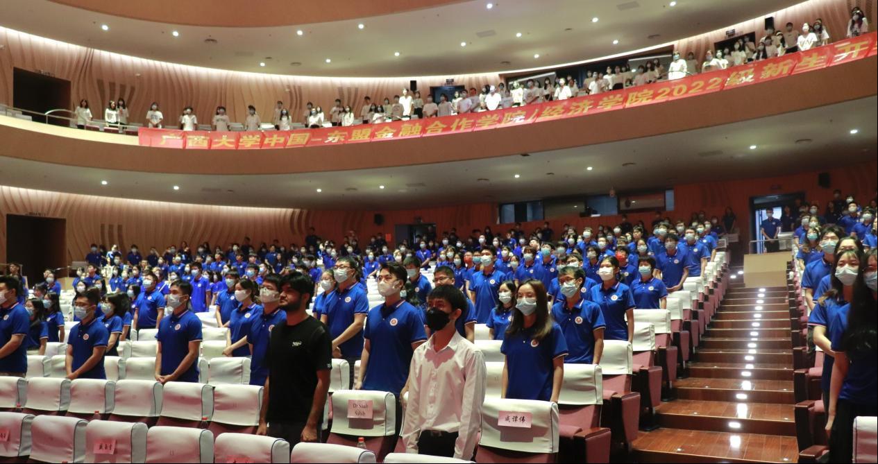 伟德国际1946中国-东盟金融合作公司/2022级新生开学仪式在全体师生合唱《伟德国际1946校歌》的昂扬旋律中圆满结束。