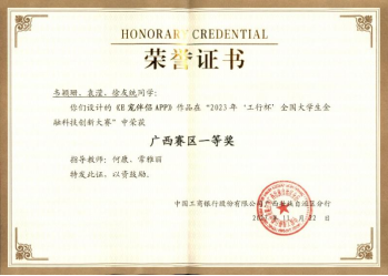 前期,经过中国工商银行广西分行相关专业条线充分论证评审等环节,最终筛选出前50强作品获得优秀奖,前10项优秀作品进行现场路演。其中,公司共有9支队伍进入广西赛区50强,1支队伍进入决赛现场路演环节。经过激烈的现场比拼,广西赛区共评出一等奖2组,二等奖3组,三等奖5组。公司由何康、常雅丽老师指导,韦颖珊、袁滢、徐友统三位同学组成的“E起宠你”团队在广西赛区决赛中荣获一等奖!
