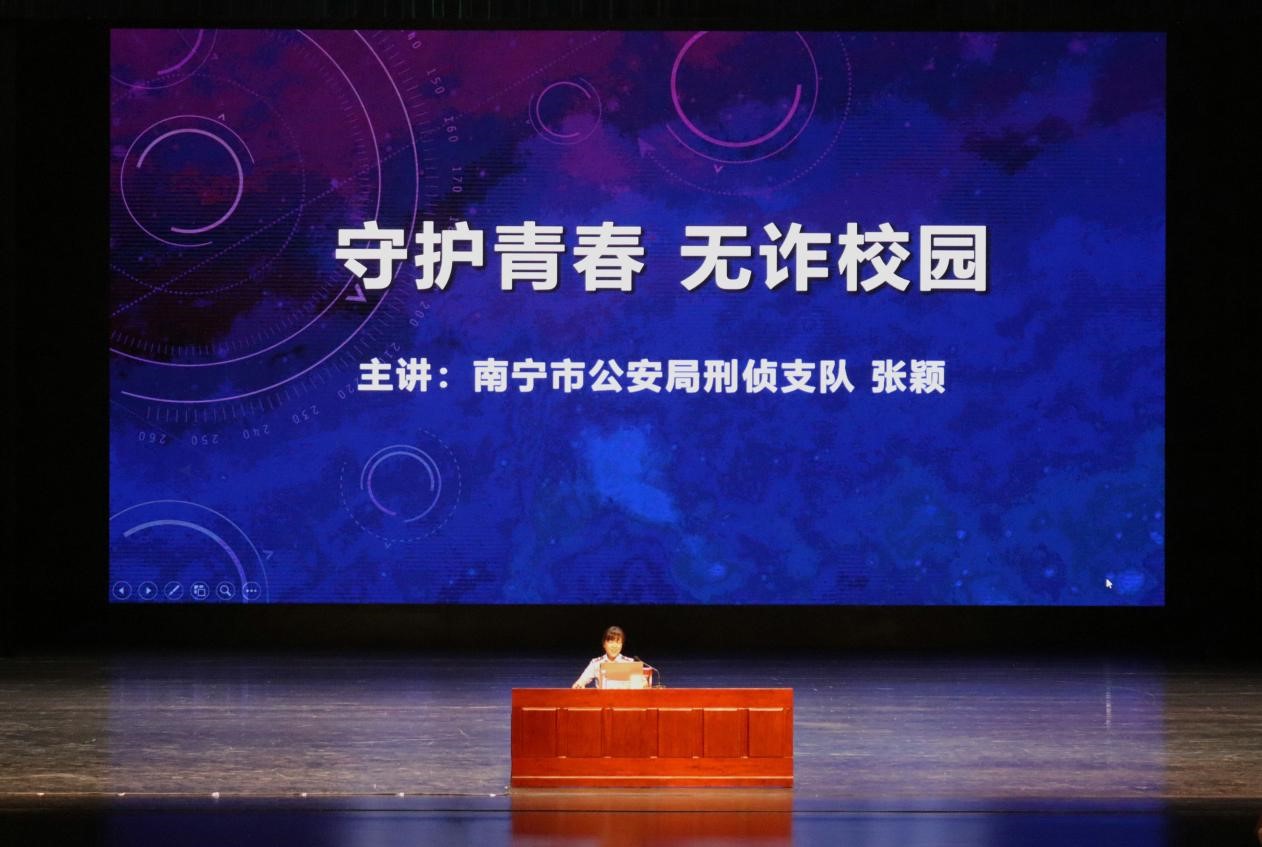 近期,伟德国际1946/中国-东盟金融合作公司邀请南宁市公安局刑侦支队张颖指导员为全体2022级新生开讲安全教育第一课(防范电信网络诈骗讲座)。
