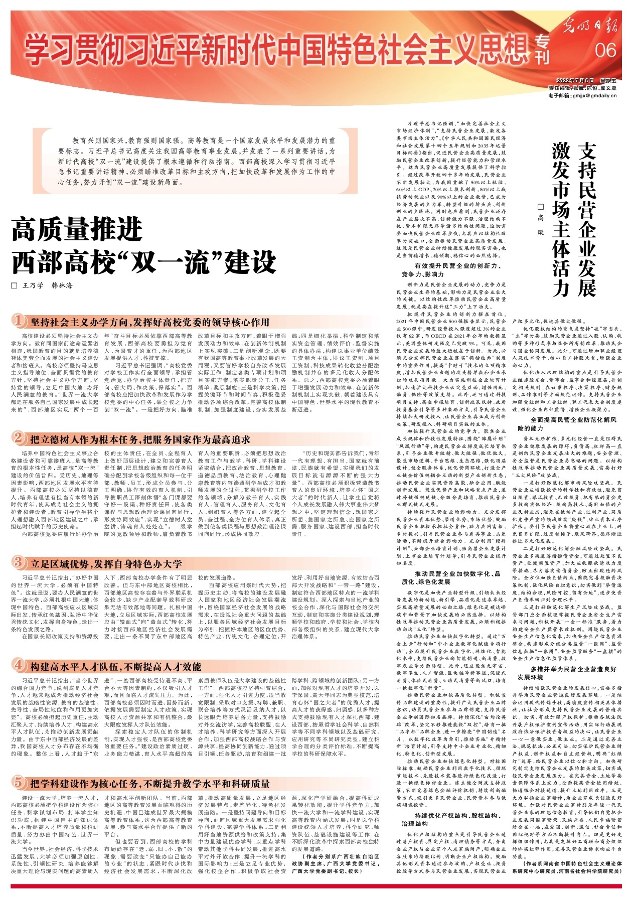 建设一流大学,培养一流人才,西部高校必须把团队建设作为核心任务,科学谋划布局,打牢员工知识功底,构建中国自主的知识体系,不断提高人才培养质量和科研质量,努力办出中国特色、世界一流大学。
