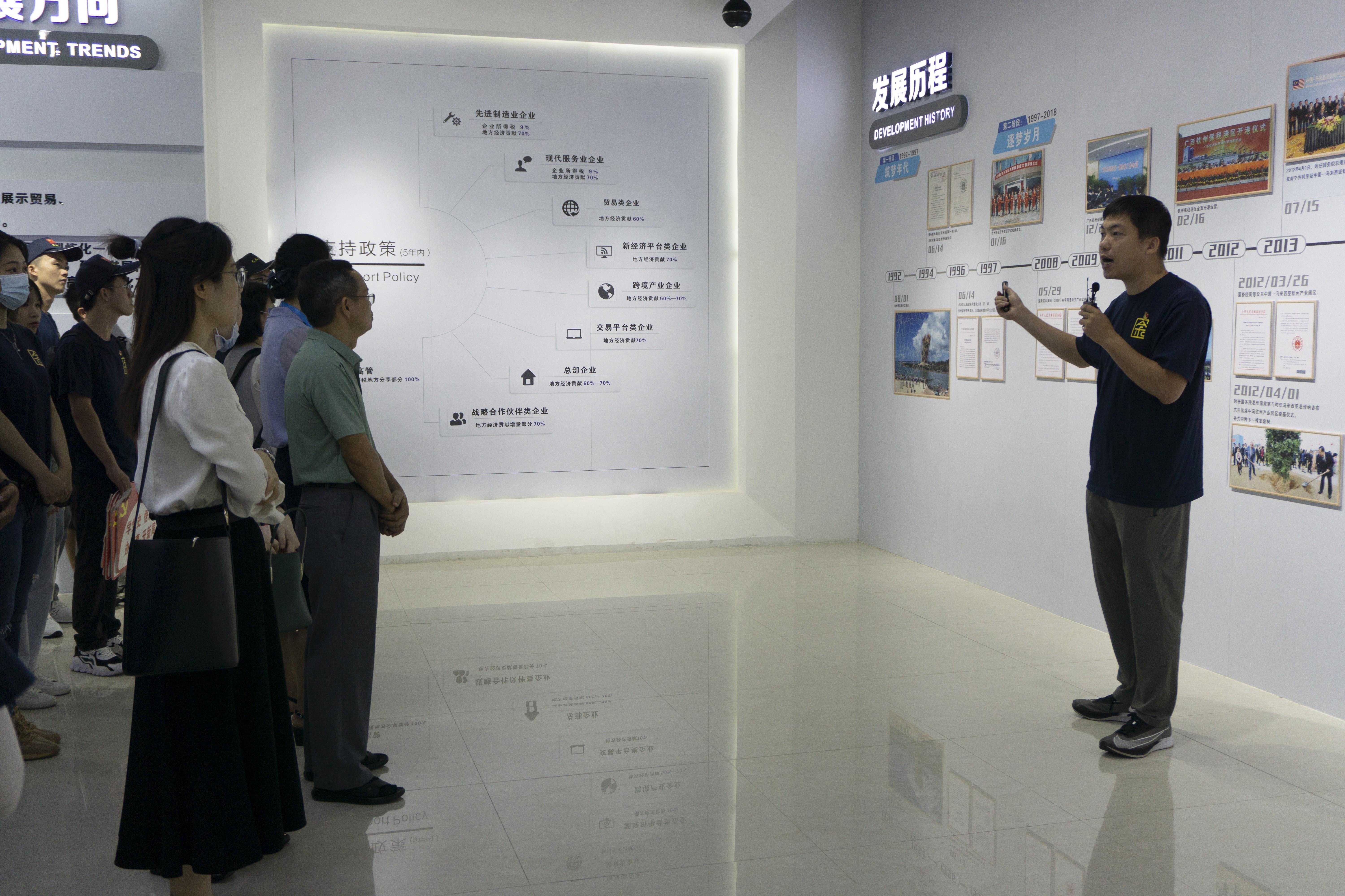 调研开始,公司师生参观来到中国(广西)自由贸易试验区(钦州港片区),进一步了解试验区的发展历程以及试验区重点产业的发展与进程。在参观之际,公司副经理陈懿在试验区内提及公司的成立与发展情况,表明公司系依据《中国(广西)自由贸易试验区建设总体方案》《广西壮族自治区建设面向东盟的金融开放门户总体方案》等重要文件设立,旨在服务中国(广西)自由贸易试验区建设、面向东盟的金融开放门户建设、西部陆海新通道、中国-东盟信息港等重大发展战略,推动落实《中国-东盟战略伙伴关系2030年愿景》提出的金融合作目标。随后大家一起乘坐大巴参观园区,体会园区的人文文化与建筑特色,加强公司师生对园区发展的了解。