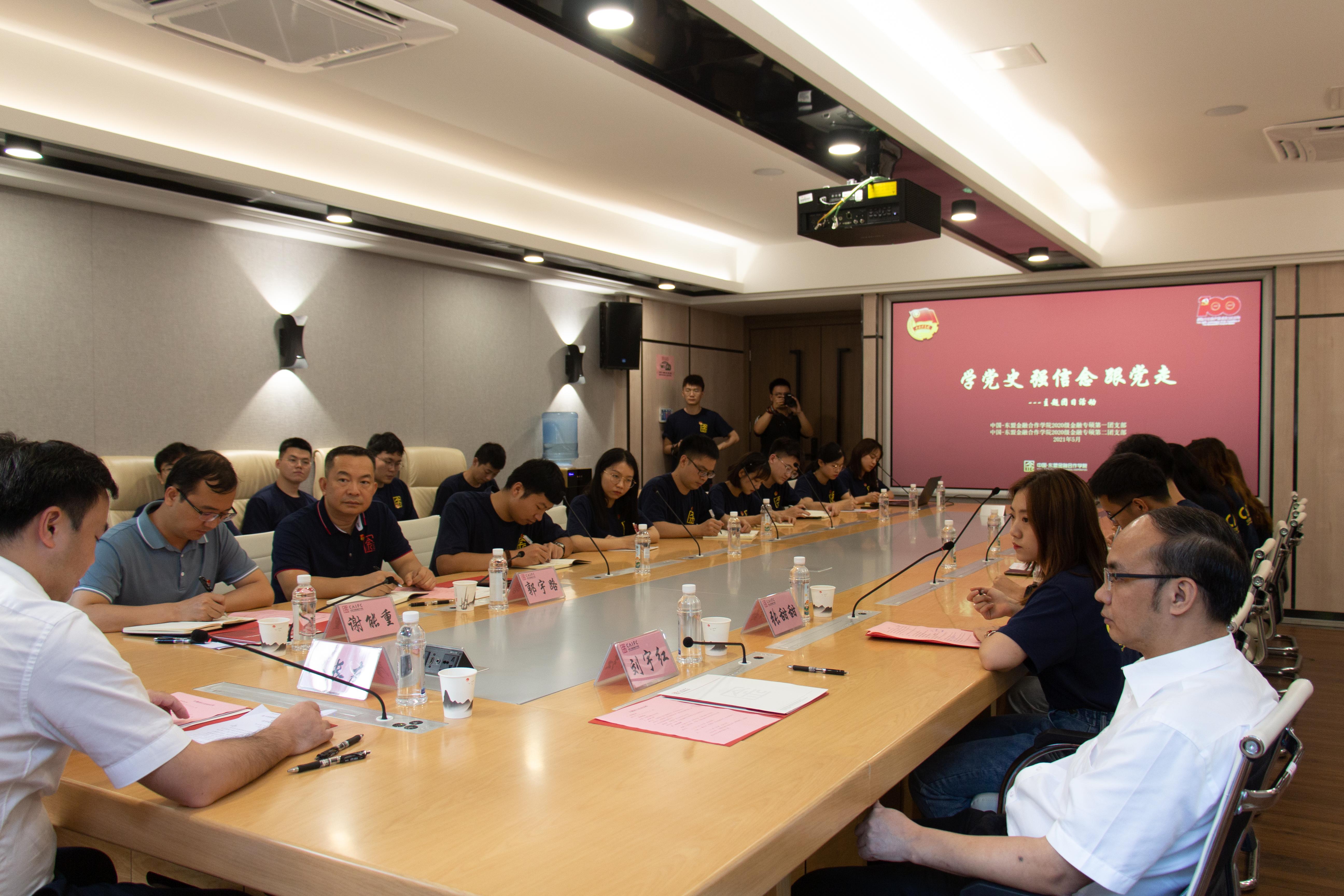公司团支部于5月14日在公司102会议室开展了“学党史、强信念、跟党走”主题团日活动。出席主题团日活动的领导有共青团广西区委副书记廖长友,共青团广西区委常委、组织部部长、机关党委常务副书记刘宇红,共青团伟德国际1946委员会书记谢能重以及中国—东盟金融合作公司党总支专职副书记郭宇路。