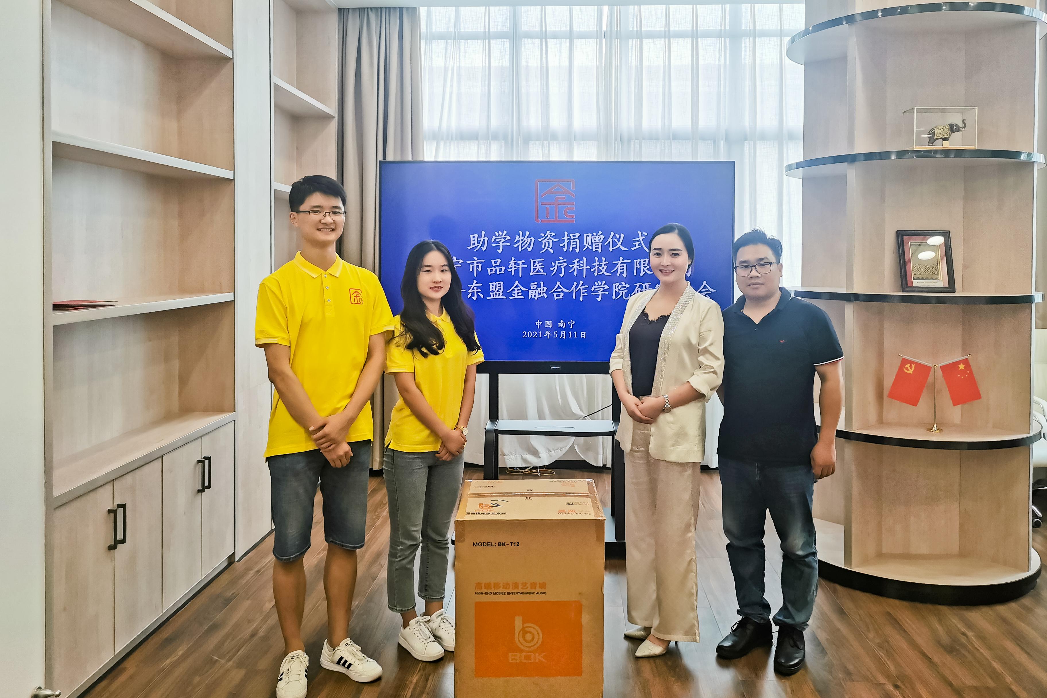 5月11日,南宁品轩医疗科技有限公司张丽媛副总经理一行三人到访伟德国际1946伟德国际1946,并向公司捐赠高端移动演艺音响一套,助力公司研究生会开展学习教育活动。院研究生会主席林衍和员工党支部副书记夏盛世代表院研会接受了助学物资捐赠。公司党总支副书记郭宇路、办公室主任王峰出席了捐赠仪式。