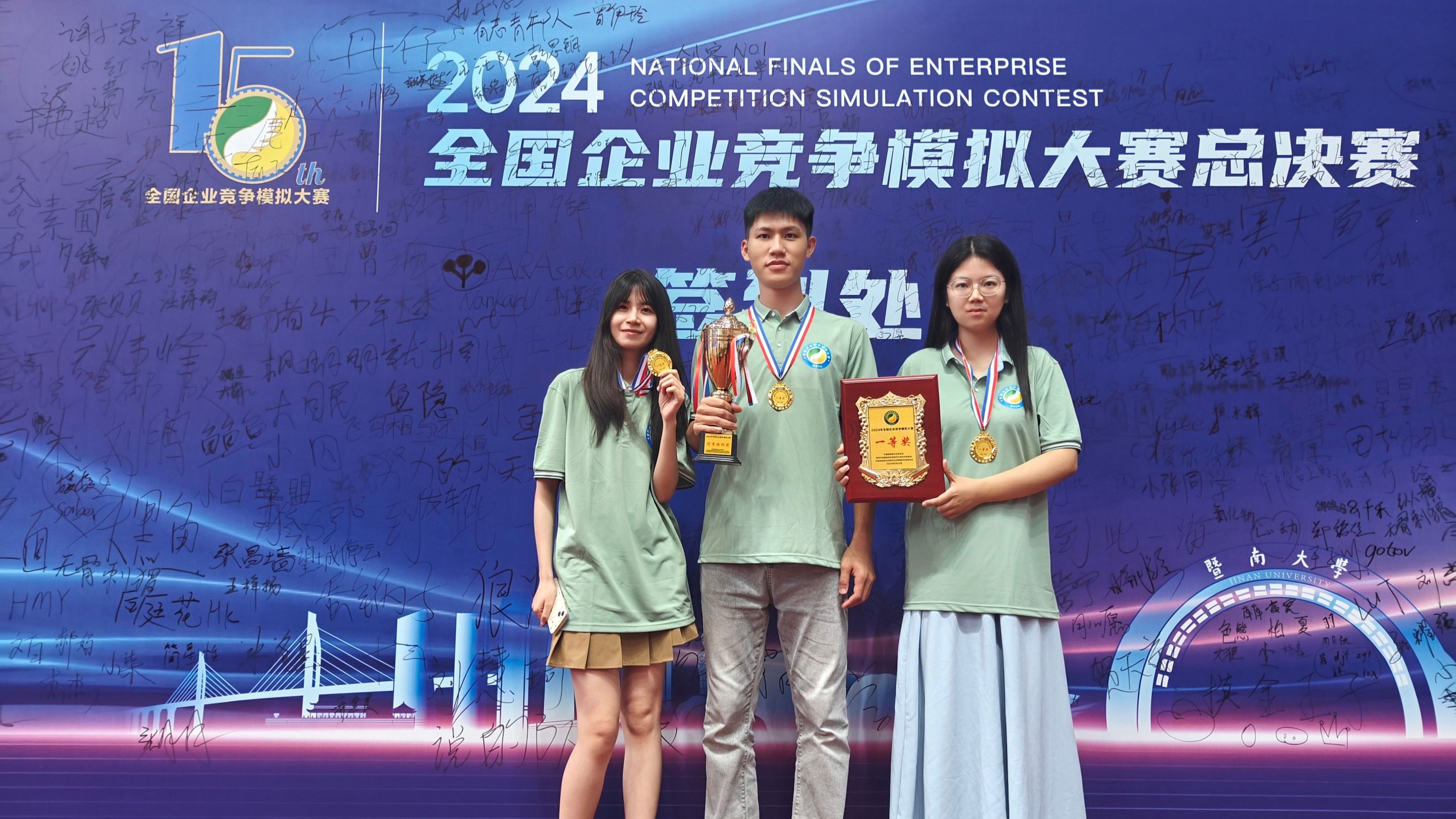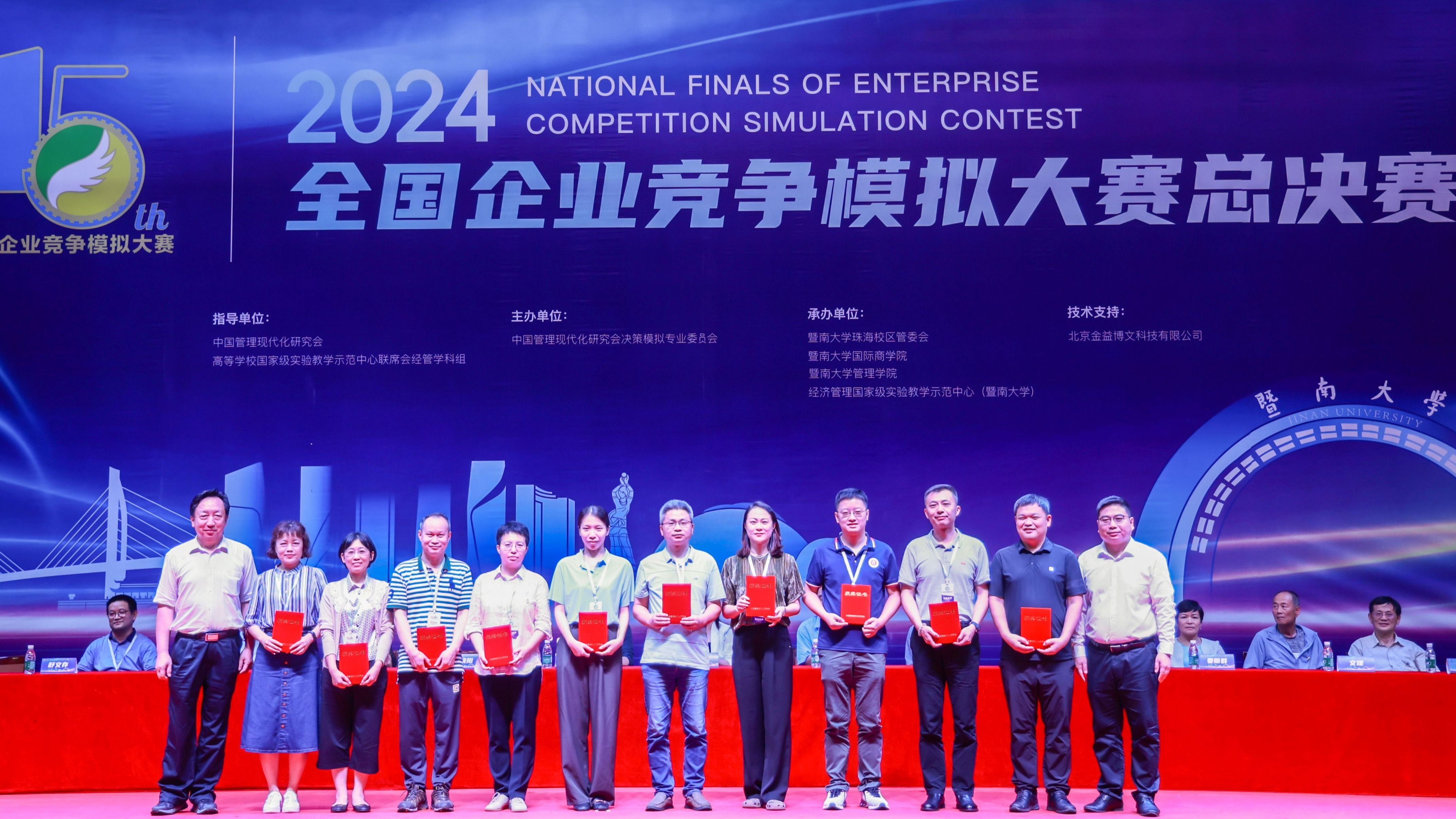 5月25日,2024年全国企业竞争模拟大赛总决赛在暨南大学珠海校区落下帷幕。在本届大赛中,公司师生力争上游,由吴维潼、徐嘉逸、张炜烽组成的“吴逸烽”代表队成功晋级全国总决赛并在“企业决策赛道”研究生组斩获赛事最高奖项(全国一等奖)。最终,公司代表队在本届大赛中荣获全国一等奖1项、二等奖2项、三等奖3项、优秀组织奖1项,公司教师陈伟宏副教授被评为优秀指导教师。
