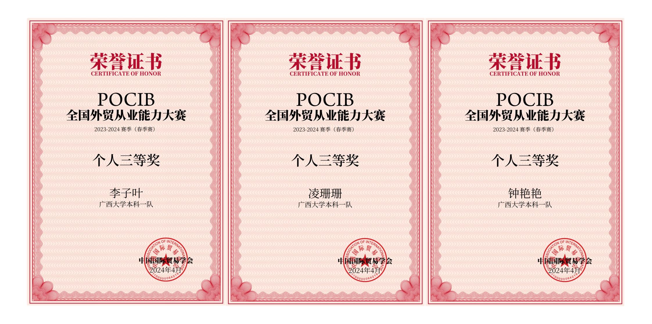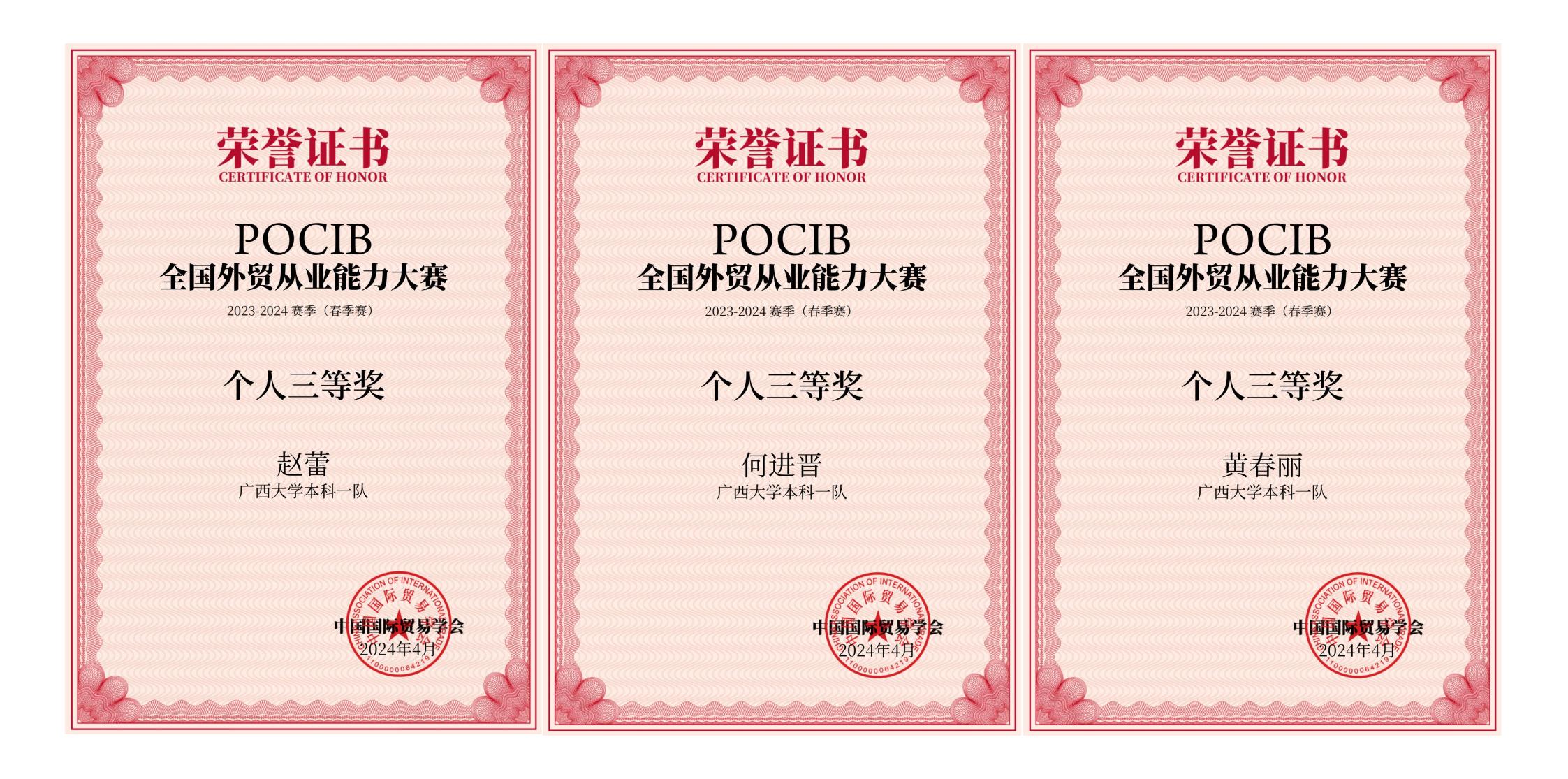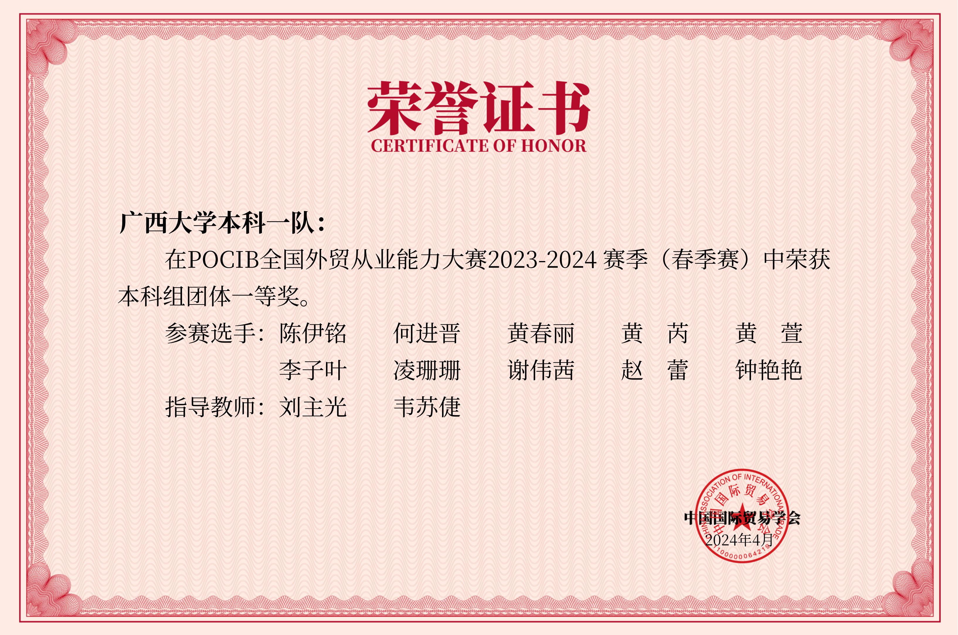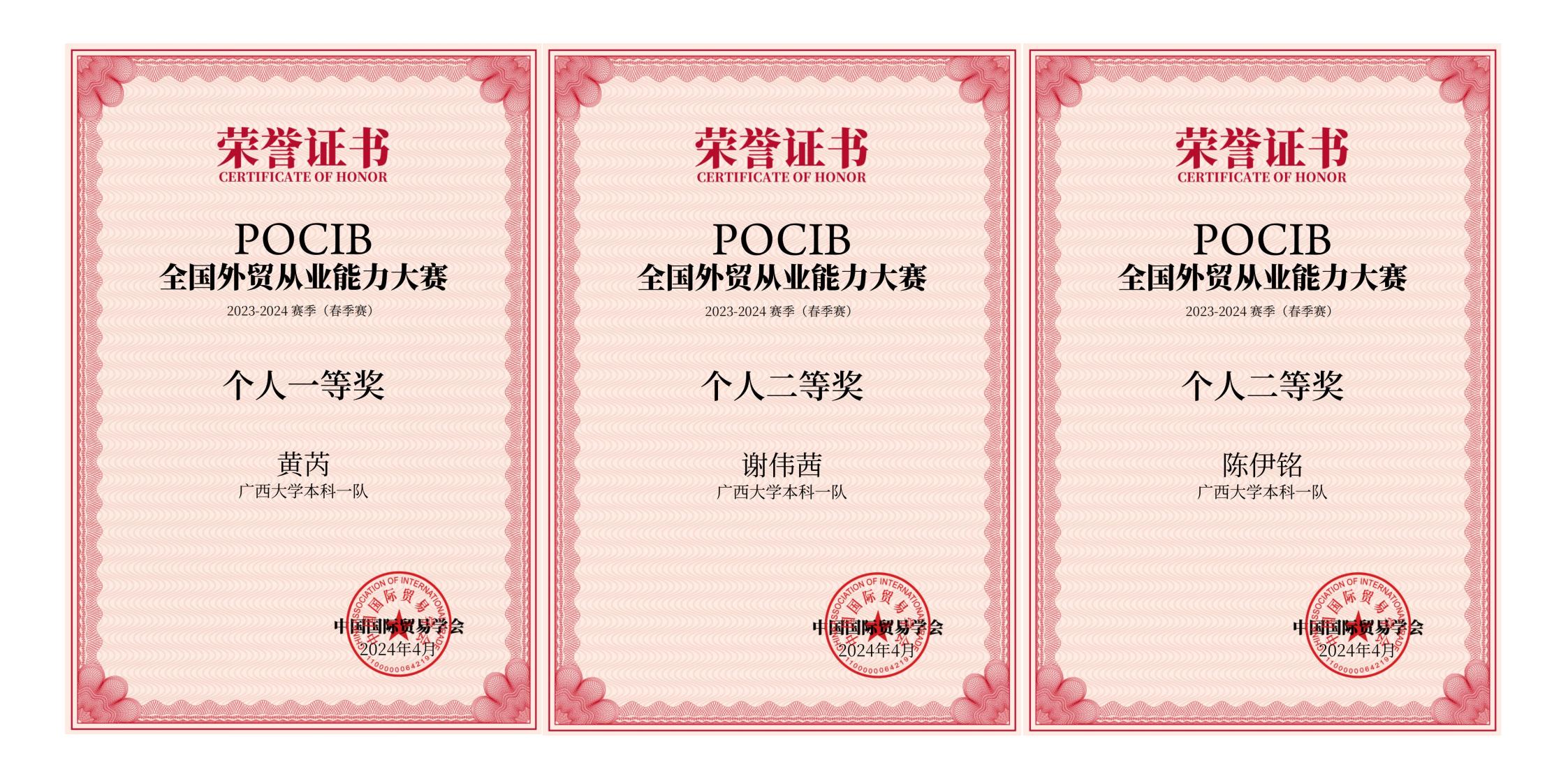 近日,第十三届POCIB全国外贸从业能力大赛2023-2024赛季(春季赛)圆满落幕,此次比赛共有294所院校共计8860名选手参加,在长达13天马拉松式的赛程中,公司本科生团队在众多参赛队伍中脱颖而出,荣获团体一等奖的殊荣,并斩获多项个人奖项,同时,公司的两名指导老师也荣获优秀指导老师一等奖。