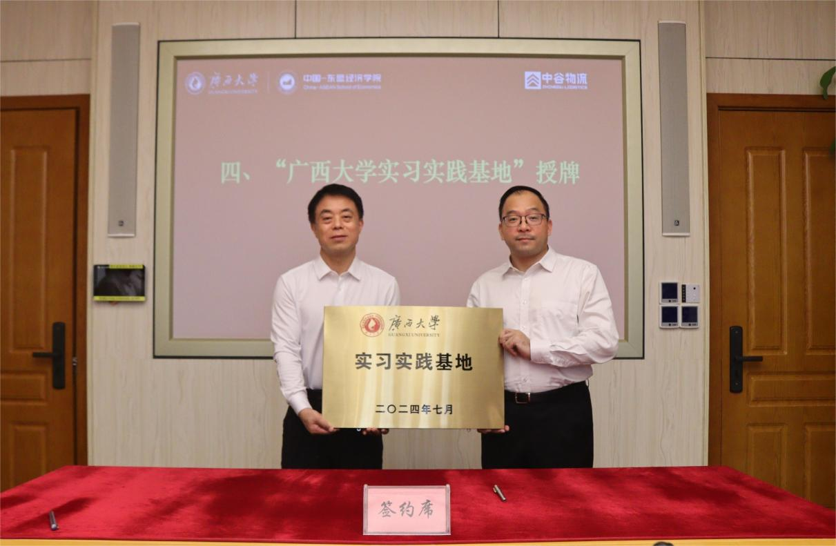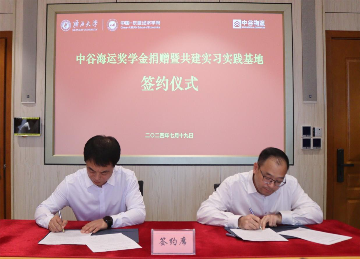 仪式上,双方举行了“中谷海运奖学金”捐赠签约和“伟德国际1946实习实践基地”授牌。