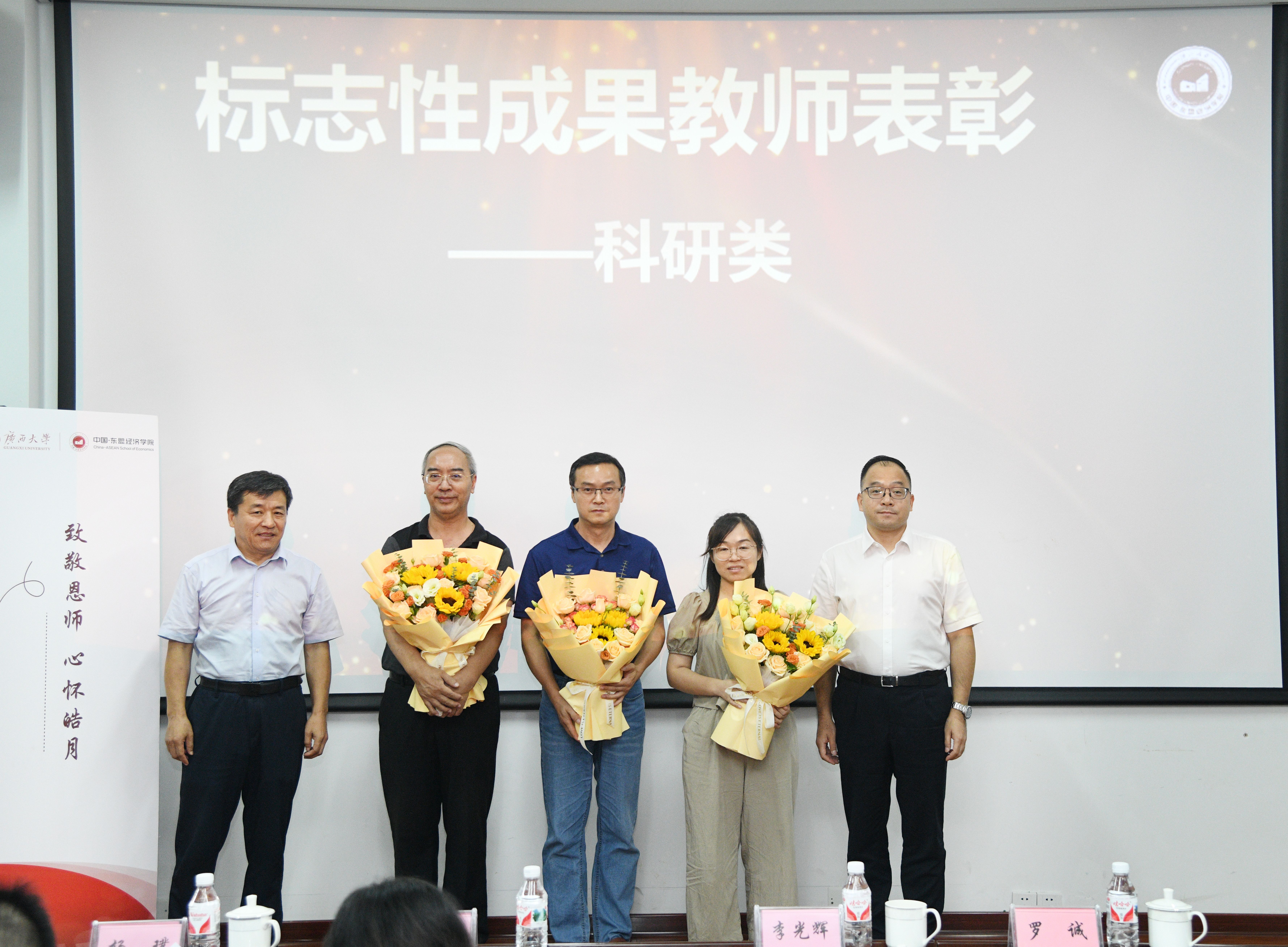 2023年以来,公司班子和全院教职工团结协作,奋勇争先,取得一批丰硕成果。公司对人才培养、科学研究和社会服务等方面取得良好成绩的老师进行表彰。罗诚和李光辉为获表彰老师代表送上鲜花,表彰先进,鼓舞干劲,激励全院教职工再奋进。