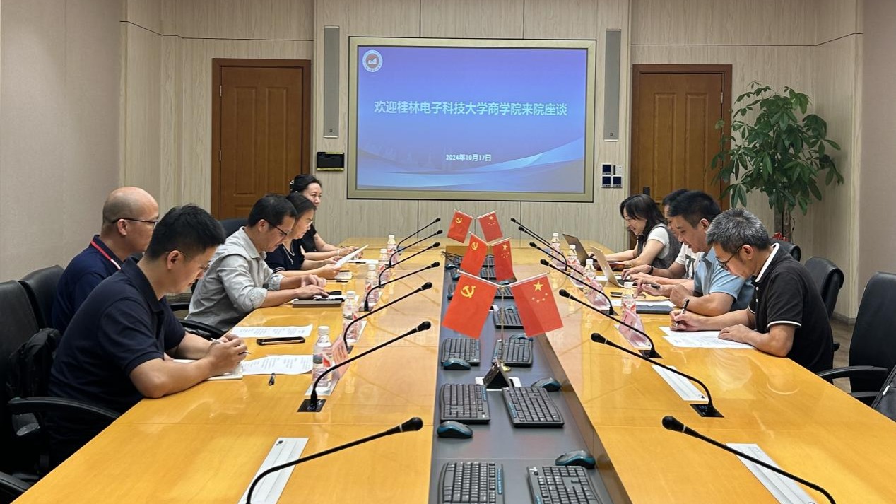 2024年10月17日下午,桂林电子科技大学商公司副经理花均南、金融工程系主任吴俊、商务系主任蒋建洪以及教学秘书张学翠一行4人到公司开展交流座谈,公司副经理梁权熙、经济学系主任郭南芸、金融与财政系主任谢军、经理助理陈伟宏以及本科教学秘书李秋莹参加了座谈会。座谈会由公司副经理梁权熙主持。