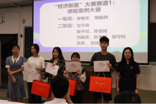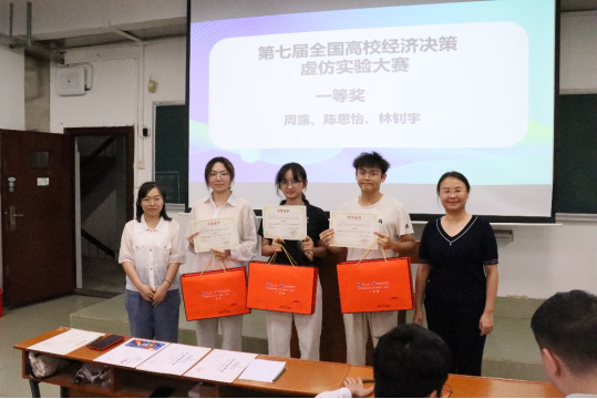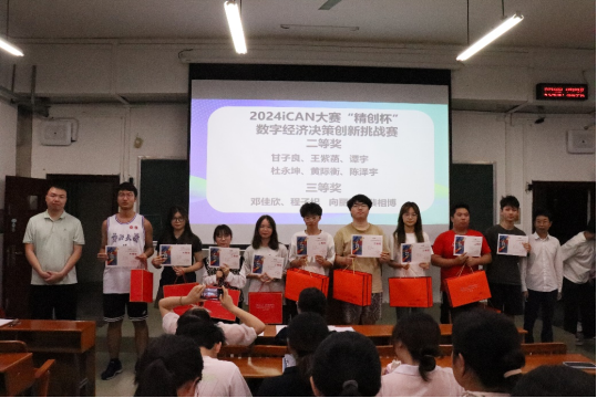 随后,举行了颁奖仪式。在公司的大力支持下,今年经济学专业举办了第二届“经济新星”大赛,并组织同学参加了全国高校经济决策虚拟仿真实验大赛、2024iCAN大赛“精创杯”数字经济决策创新挑战赛。随着同学们创新创业意识的提高,各项竞赛的参赛人数再创新高,作品质量不断提高,比赛成绩显著提升。参会老师为获奖的同学进行了颁奖。