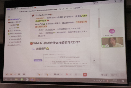 马源同学结合自身经历,从求职方向、岗位设置情况、如何打破信息壁垒提高求职成功率等几个方面分享求职经验。