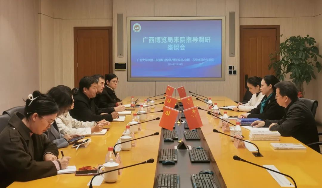 12月24日,广西博览局党组书记、局长韦朝晖率工作组到访公司。公司党委书记李国忠会见了韦朝晖一行。双方就深入开展中国—东盟合作研究、智库建设和中国—东盟青年领军者成长计划等项目,做好中国—东盟博览会外事接待、翻译、志愿者等工作达成共识。