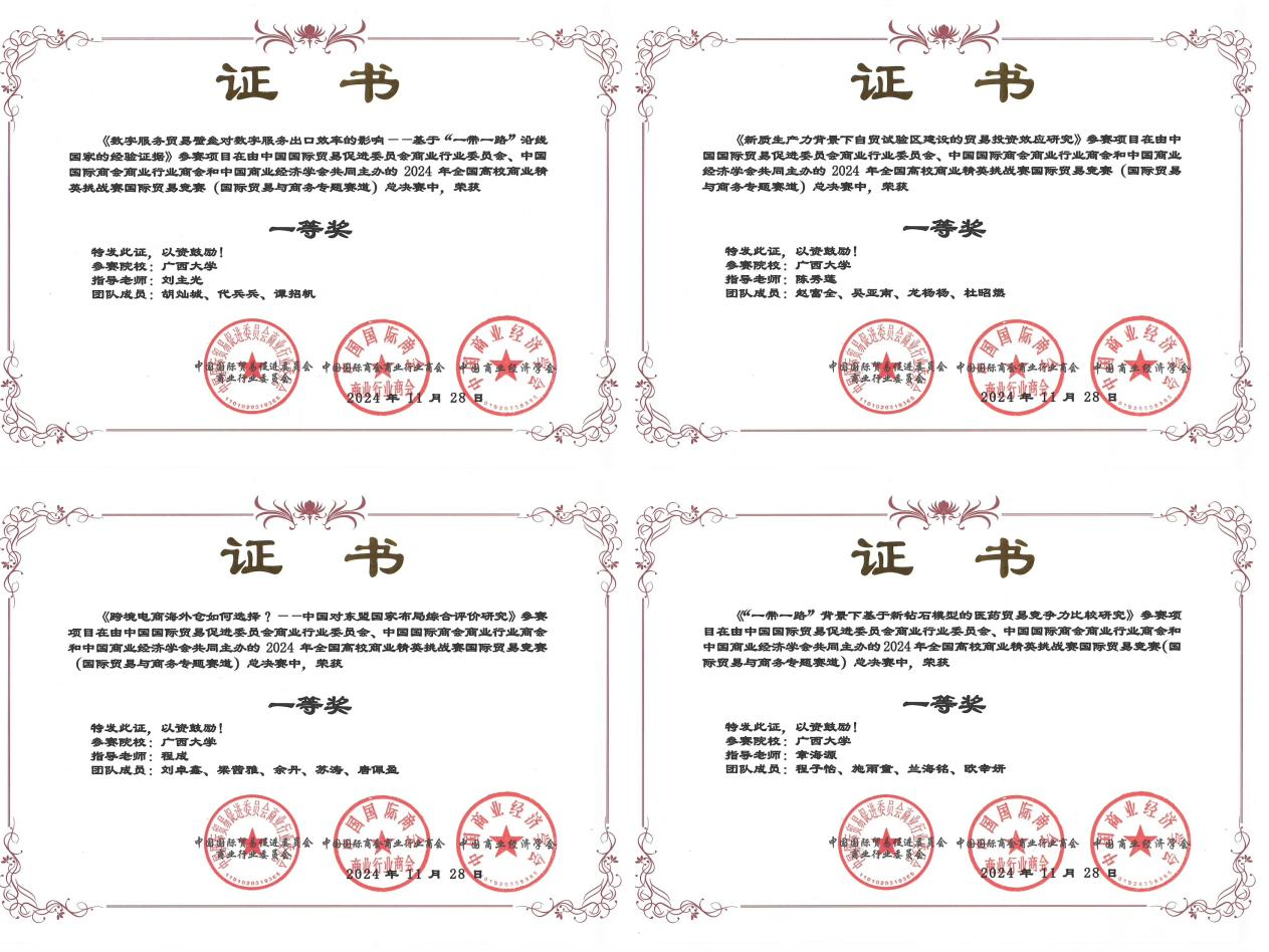 近日,2024年全国高校商业精英挑战赛国际贸易竞赛落下帷幕,公司研究生凭借出色的专业素养和团队合作精神,在激烈的竞赛中脱颖而出,取得了优异的成绩。