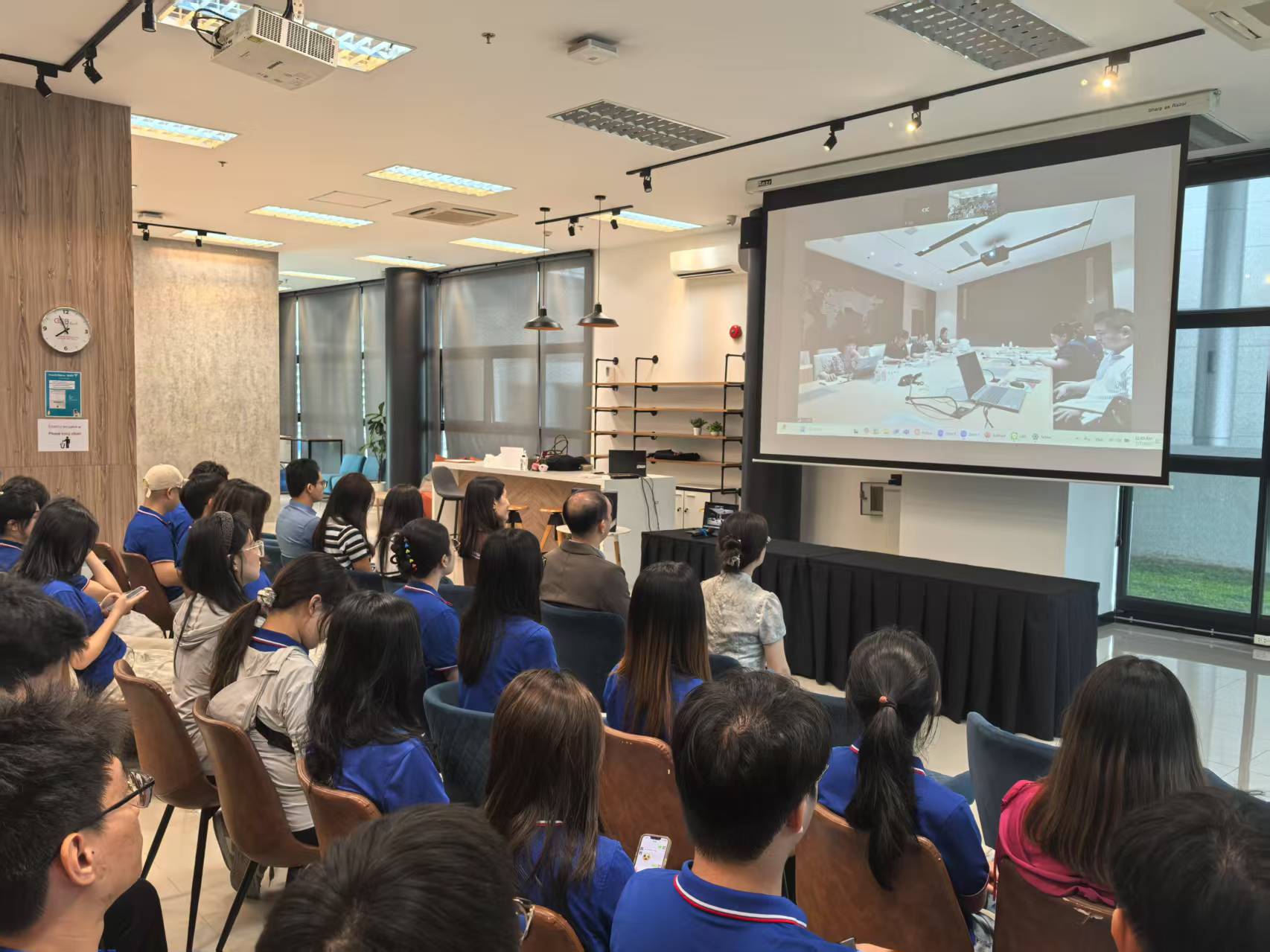 7月7日,项目开班仪式在清迈大学科技园校区隆重举行。公司35名访学员工与清迈大学代表,中国驻清迈总领馆商务领事吕胜、清迈大学 CAMT 数字公司副经理李雄英等出席仪式。公司党委副书记刘梦娟在中国主持线上仪式,李光辉经理致辞,谭春枝副经理、公正副经理及带队老师线上参会。