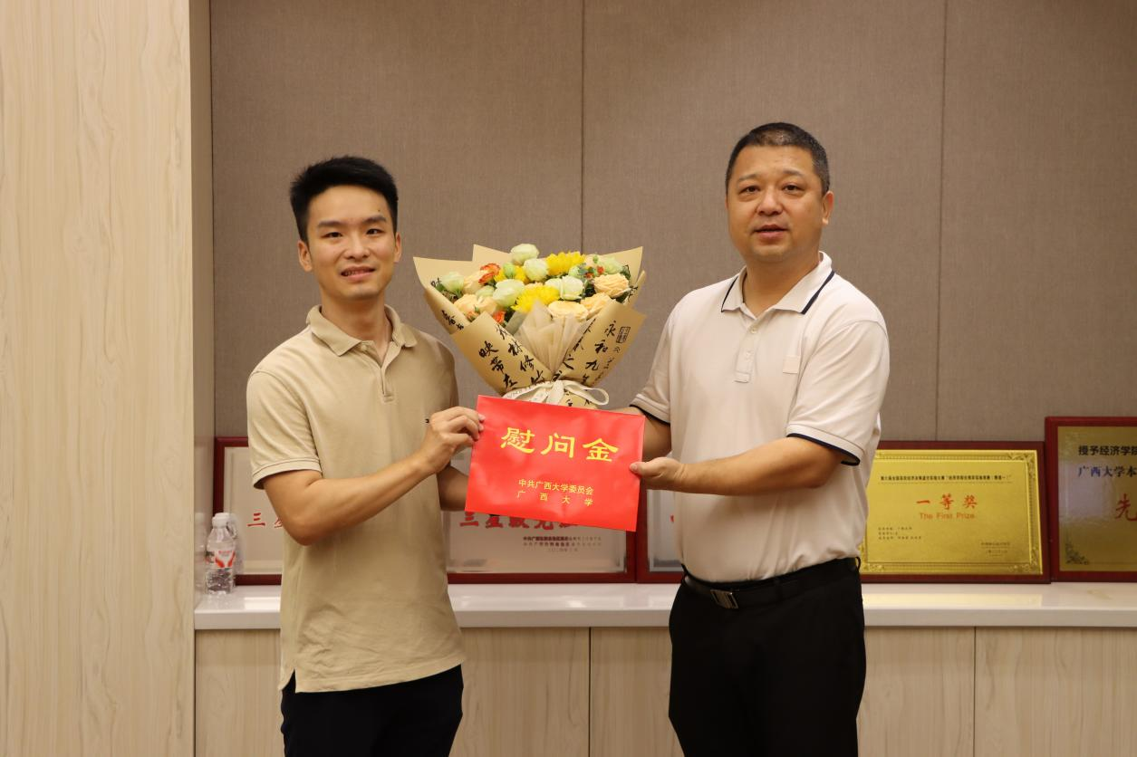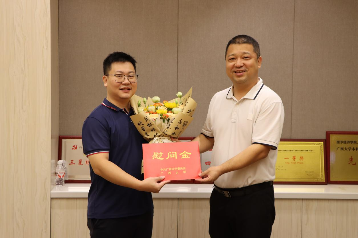 公司党委常务副书记姜玮向章海源、刘骞文、张伟豪三位老师献花