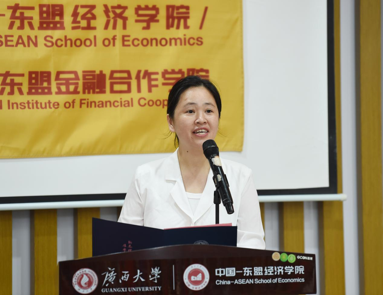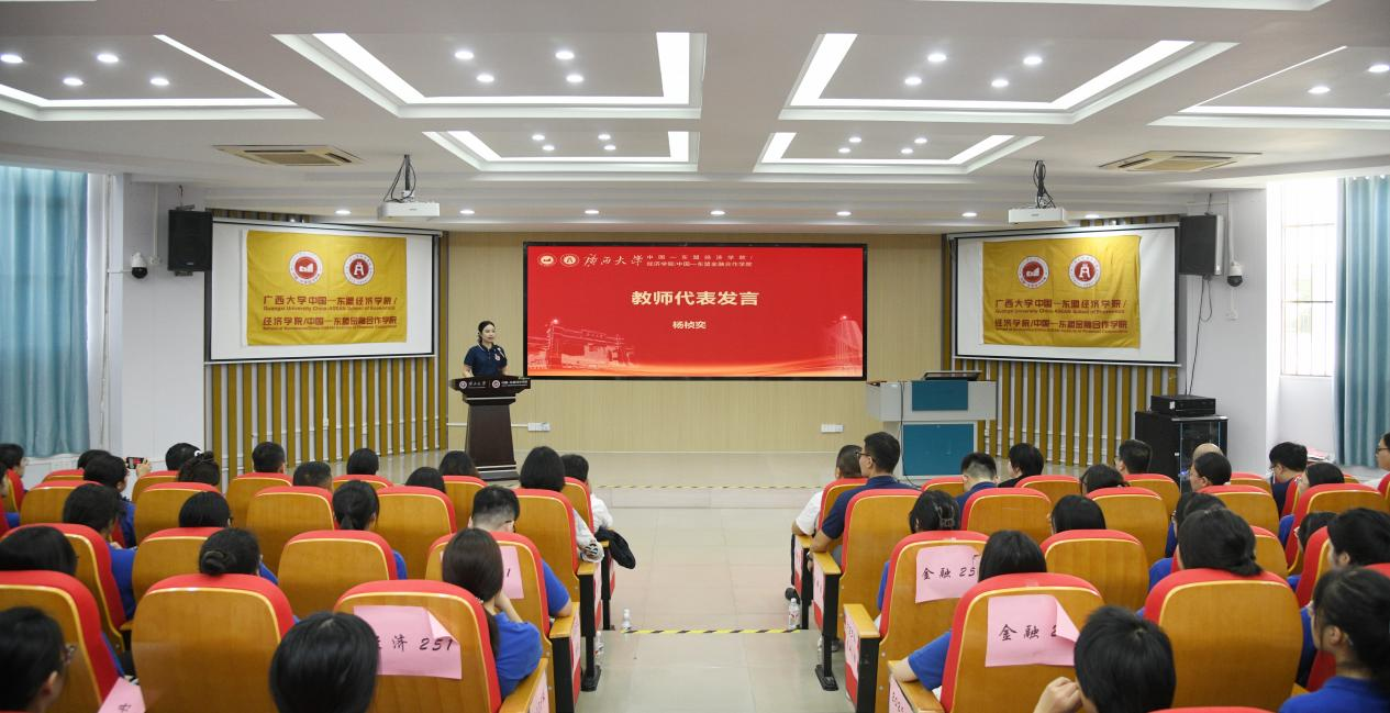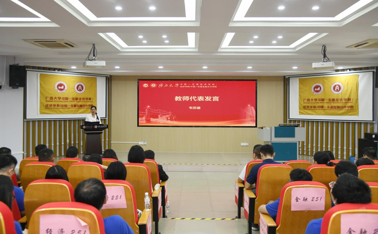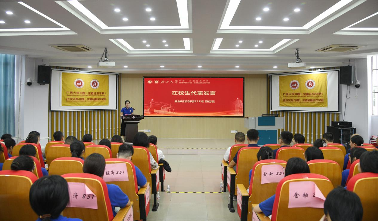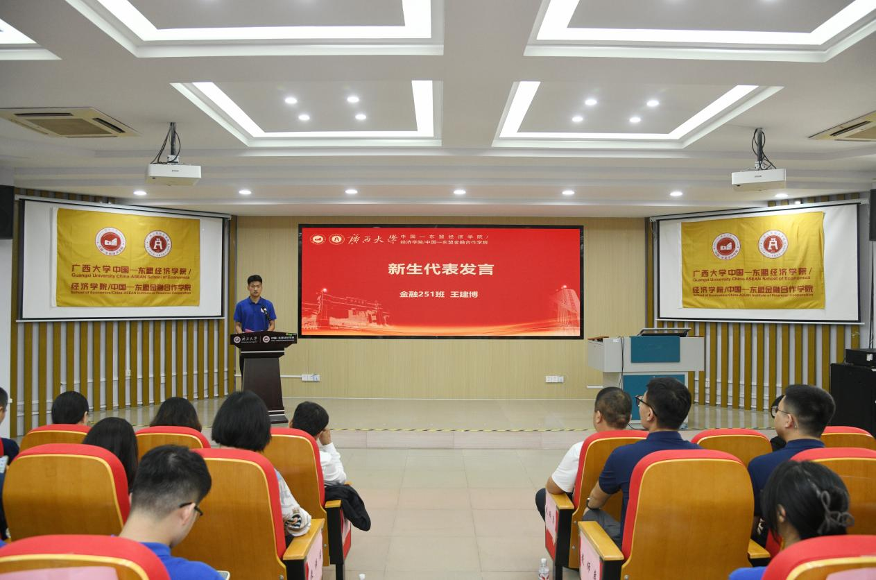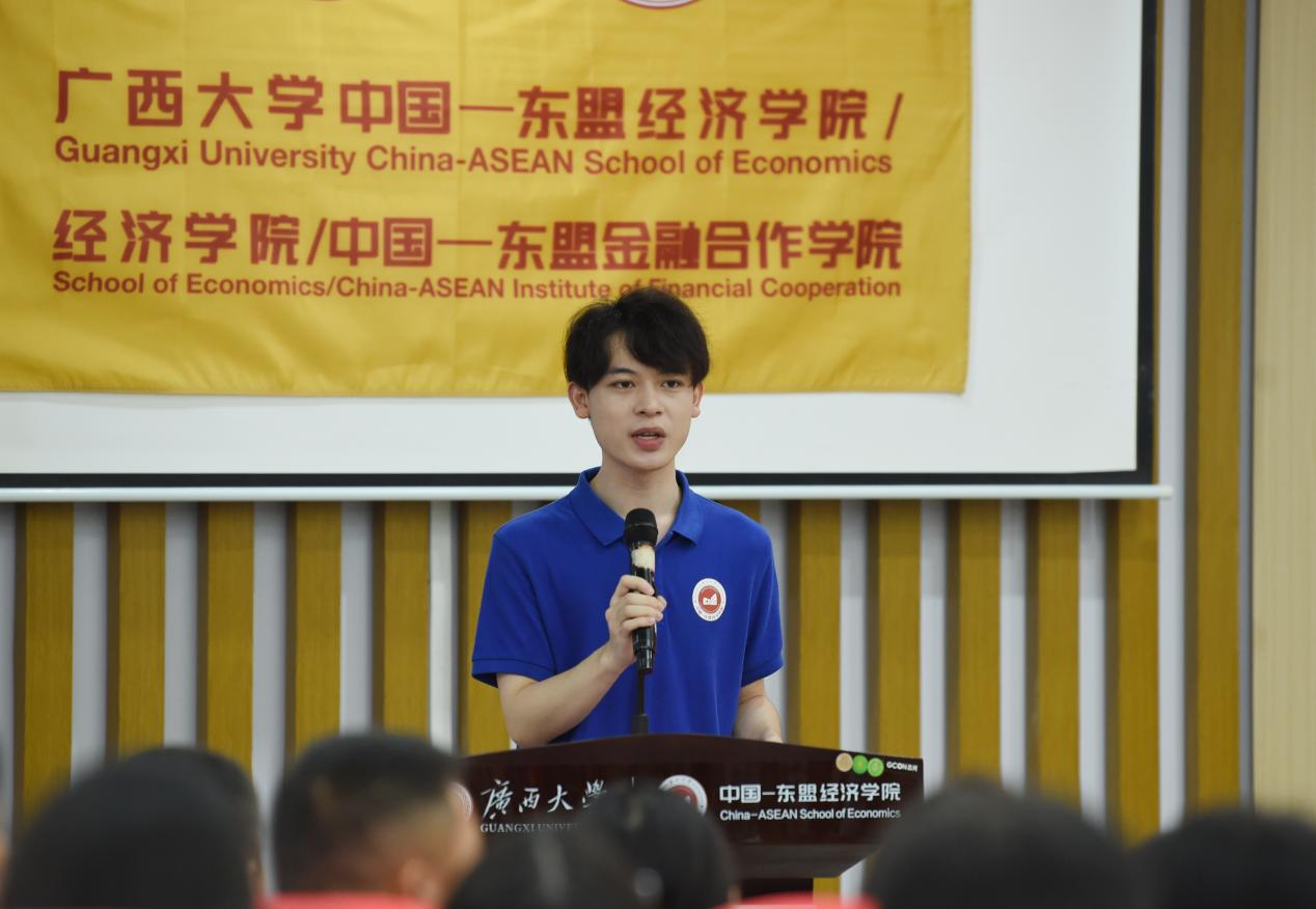 公司研究生会主席团成员、2024级金融专硕的李沅芷以“扎根、破界、坚守”为关键词,为新生们提出了三点建议:她鼓励新生深入中国—东盟合作一线,厚植家国情怀;善用国际化平台,拓展全球视野;保持热爱与信念,锤炼研究能力和职业品格。最后,她也祝愿新生们学有所成、青春无悔。